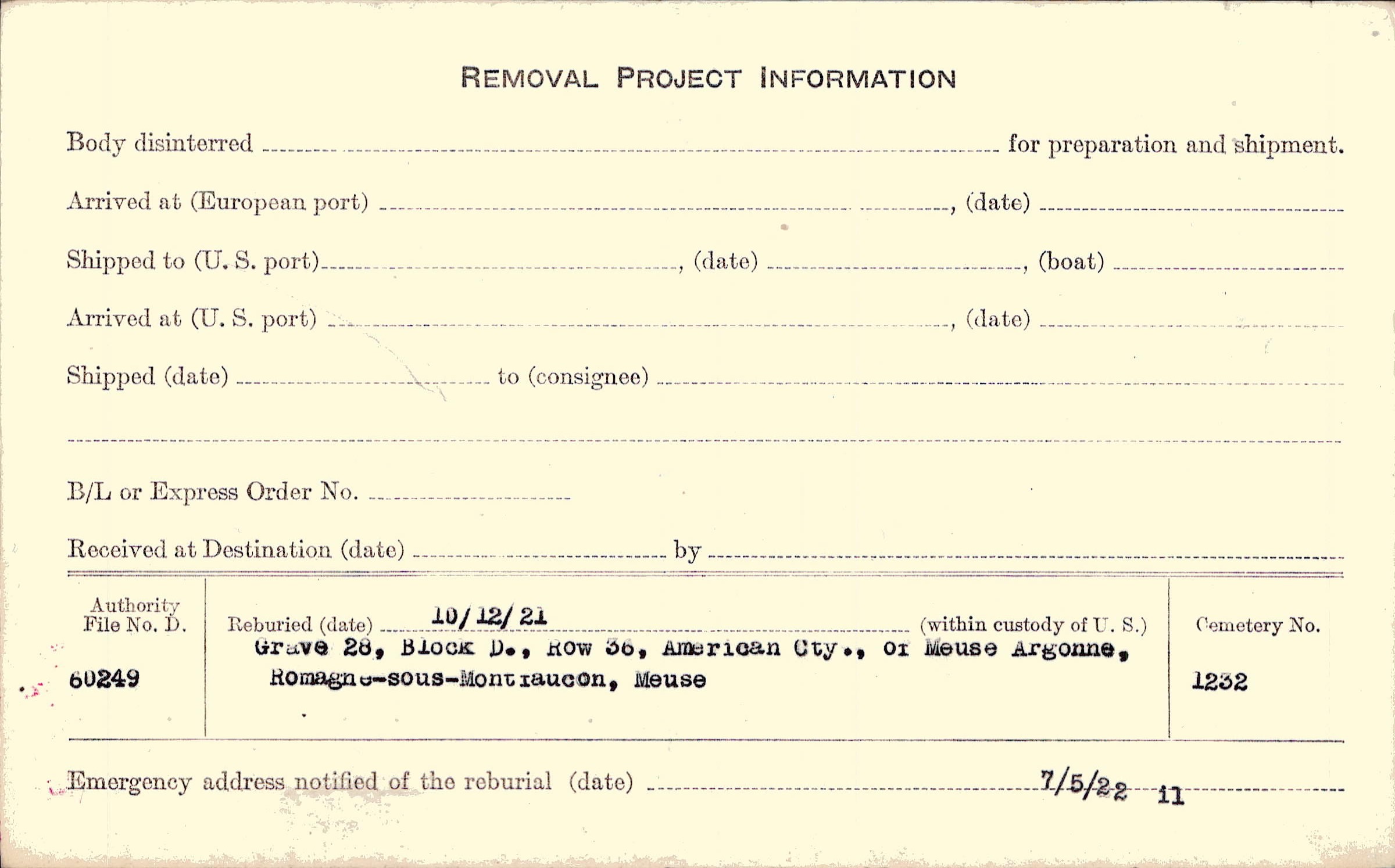 | Permanent Burial in Foreign Cemetery |