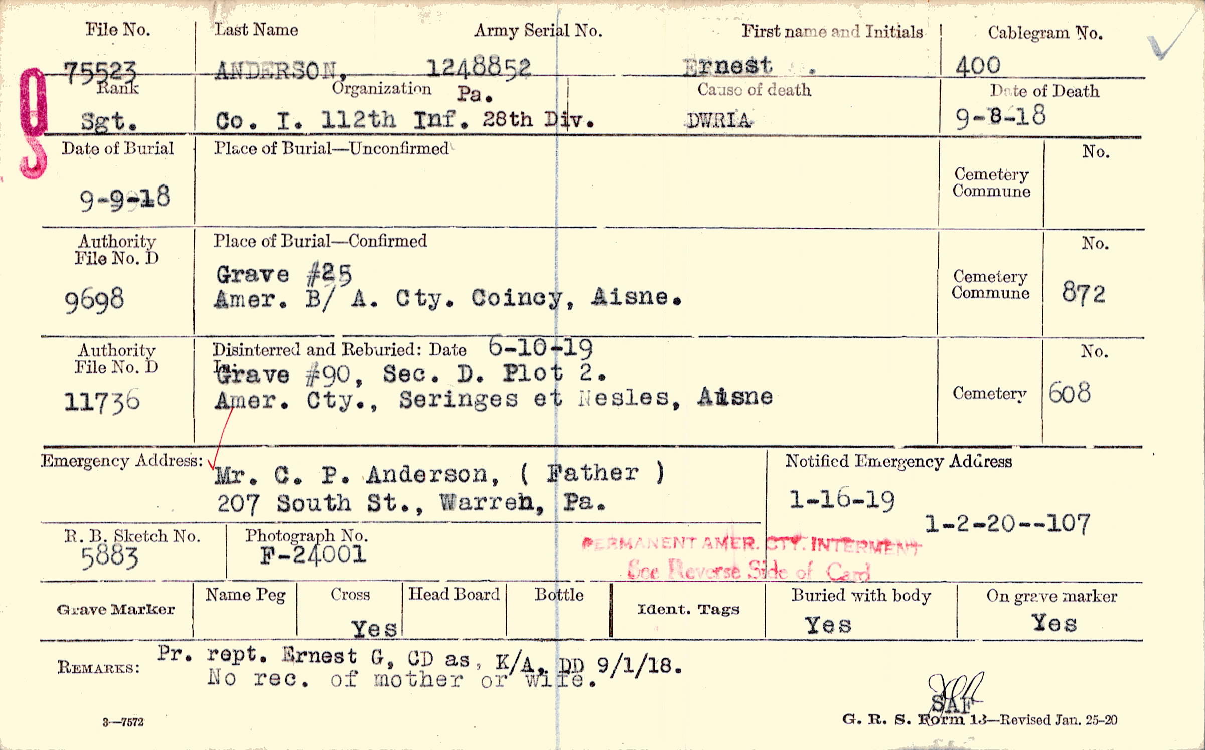 Pr. rept. Ernest G, CD as, K/A. DD 9/1/18. No rec. of mother or wife.