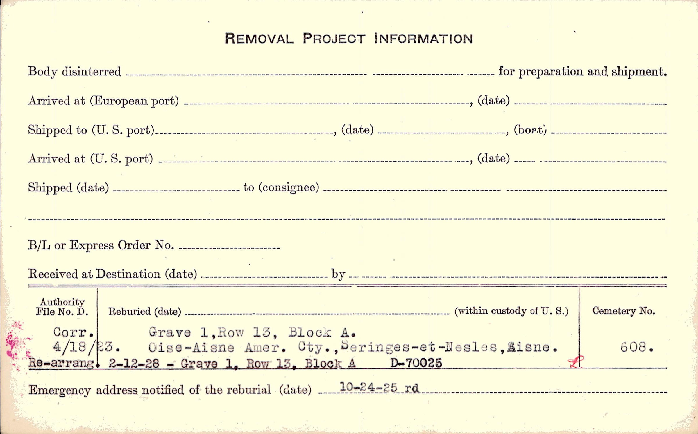 Grave #25, Amer. B/ A. Cty., Coincy, Aisne