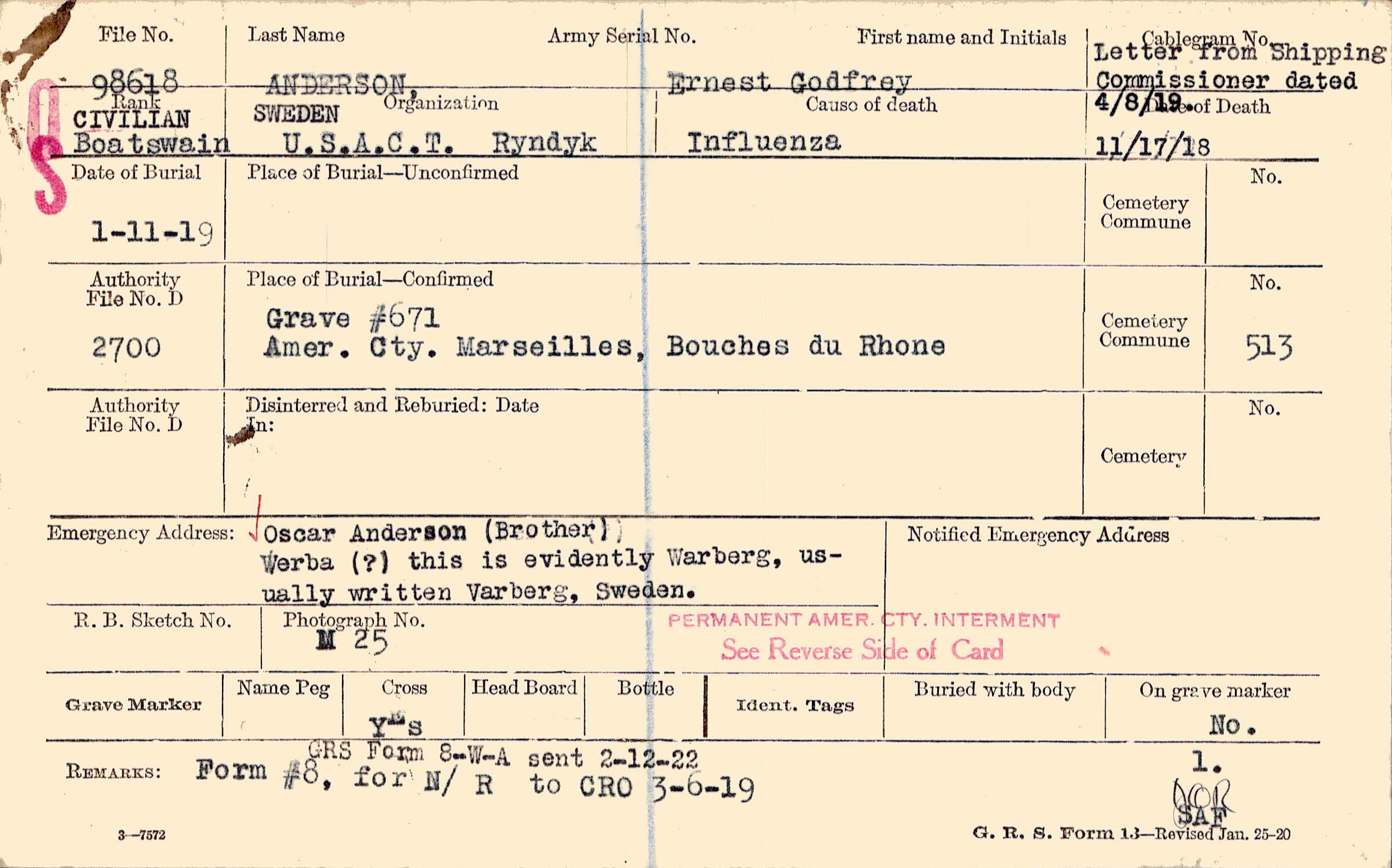 Grave #671, Amer. Cty., Marseilles, Bouches du Rhone