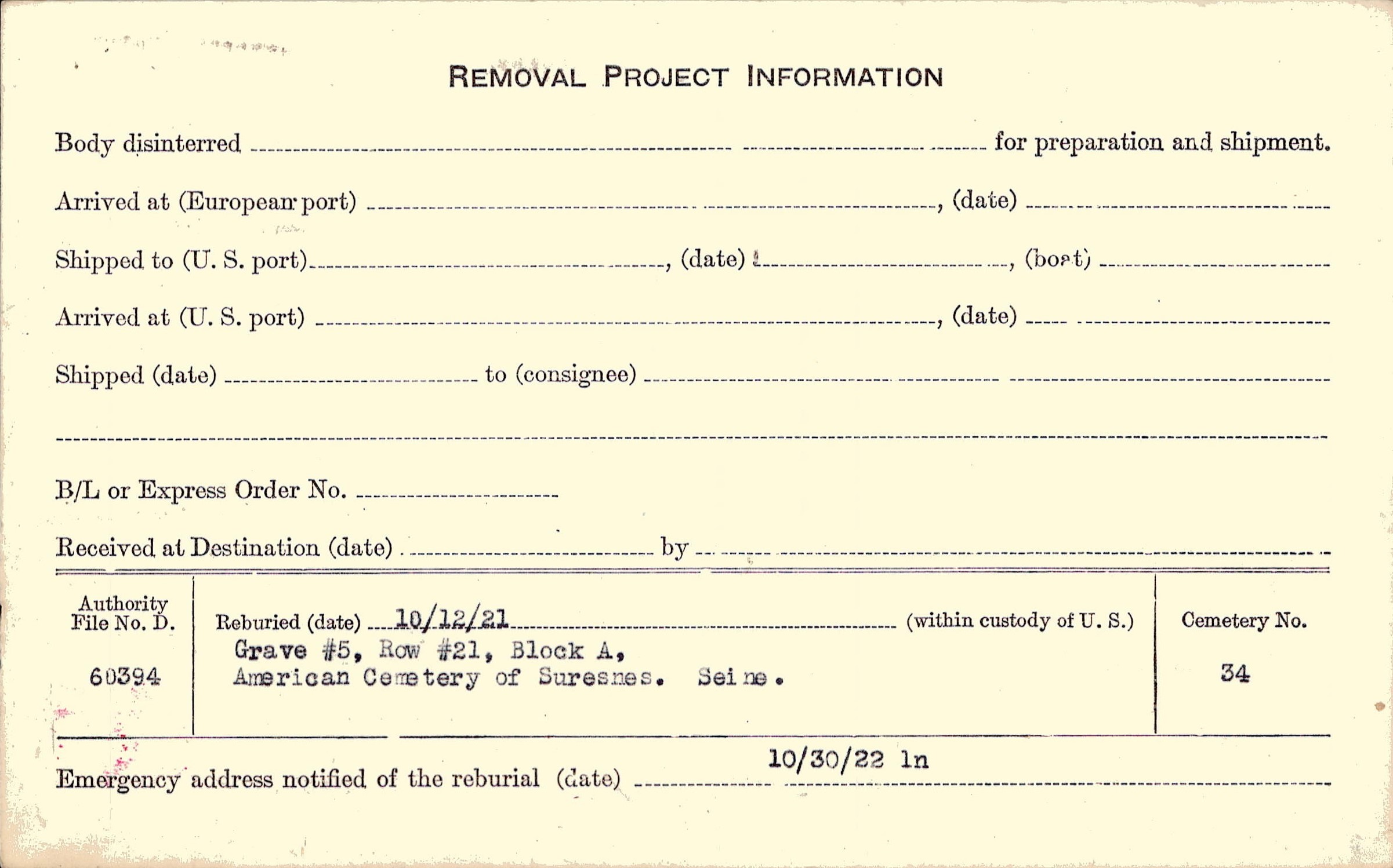 | Permanent Burial in Foreign Cemetery |
