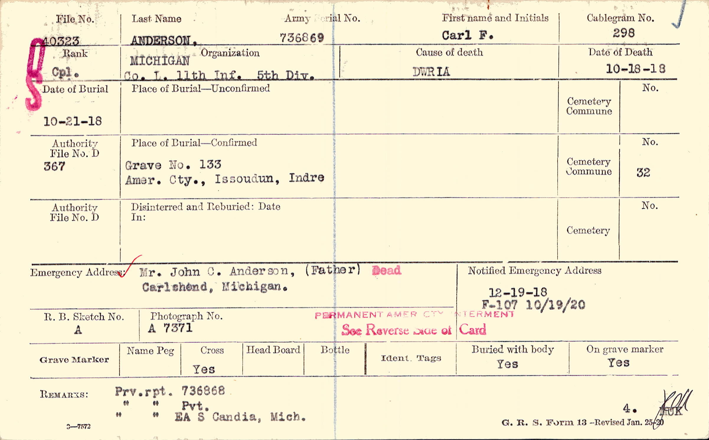 Mr. John C. Anderson, (Father), Carlshend, Michigan., Dead
