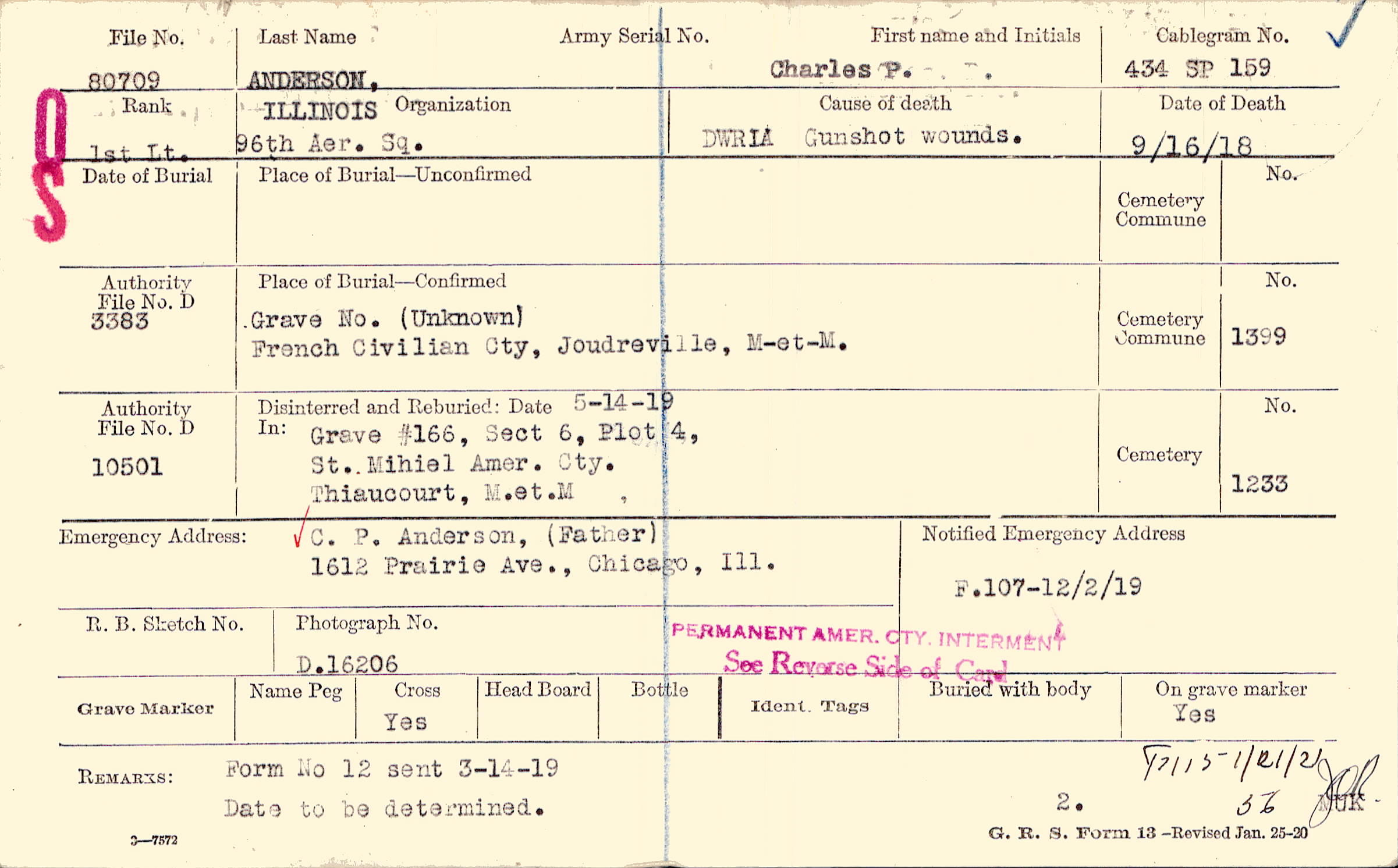 C. P. Anderson, (Father), 1612 Prairie Ave., Chicago, Ill.