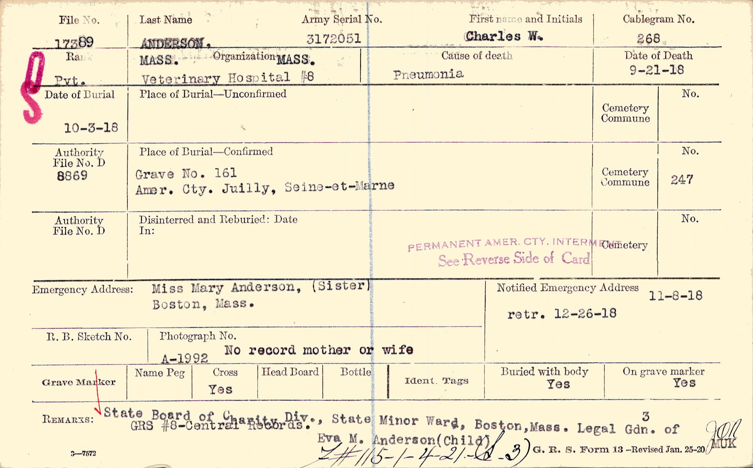 State Board of Charity Div., State Minor Ward, Boston, Mass. Legal Gdn. of Eva A. Anderson (Child) GRS# 8 Central Records., GRS #8-Centeral Records., F#115-1-4-21-(S.3)