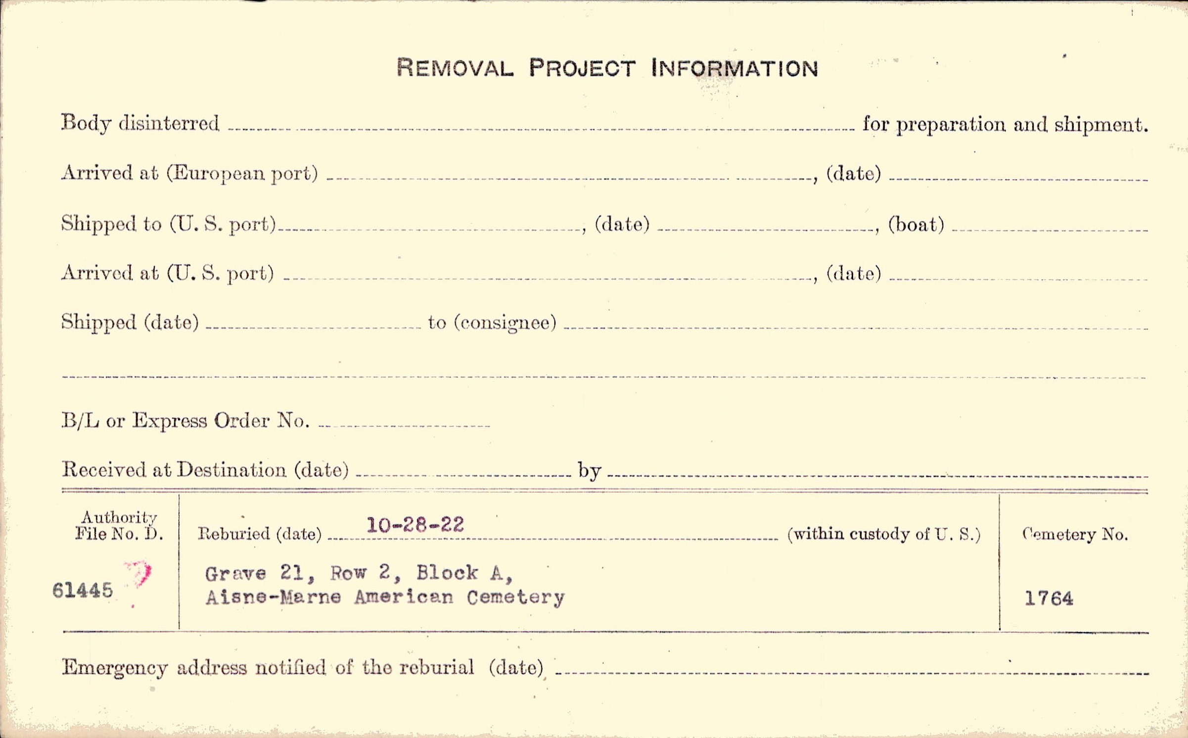 | Permanent Burial in Foreign Cemetery |