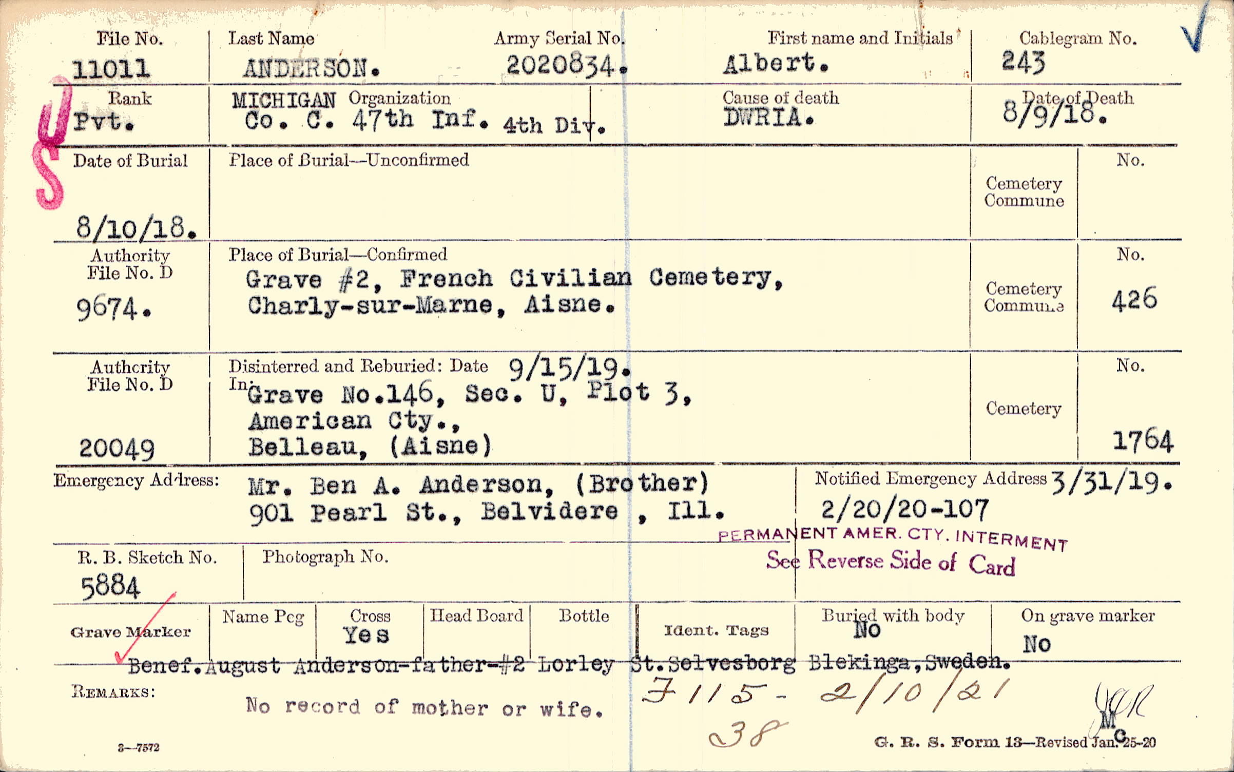 Benef. August anderson, -father-, #2 Lorley St., selvesborg Blekinga, Sweden, F 115 - 2/10/21 38
