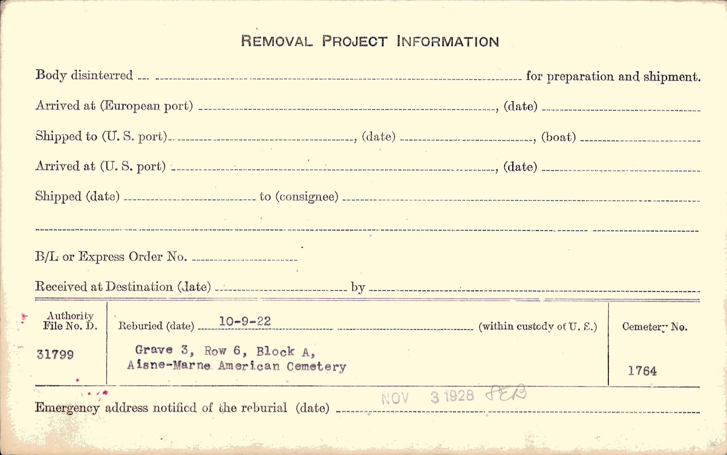 | Reburied (date): |