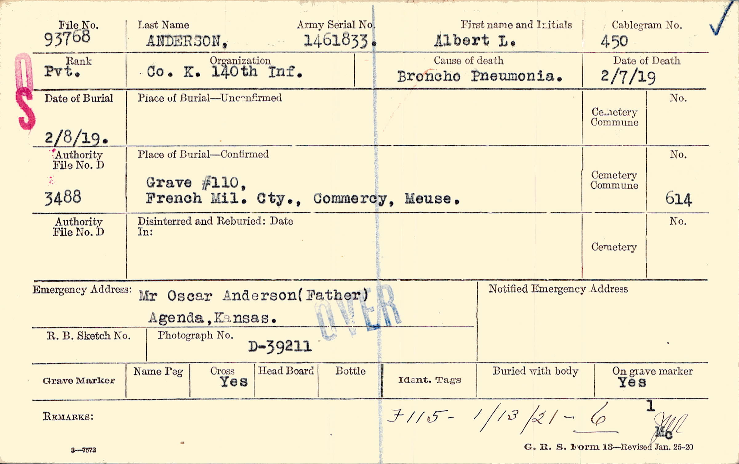 Grave #110, French Mil. Cty., Commercy, Meuse.