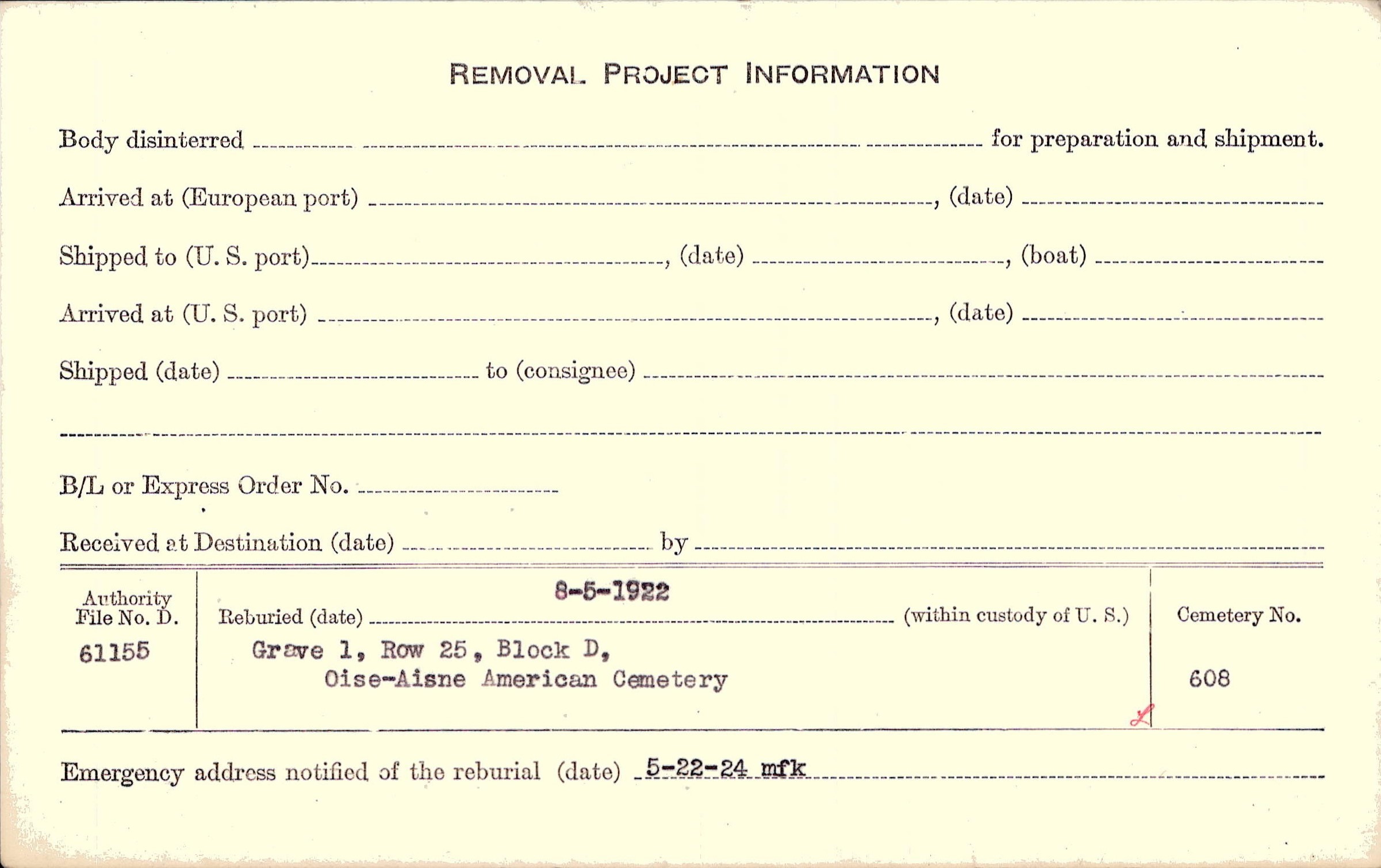 Grave 408, Amer. Battlearea Cty., Juvigny, Aisne.