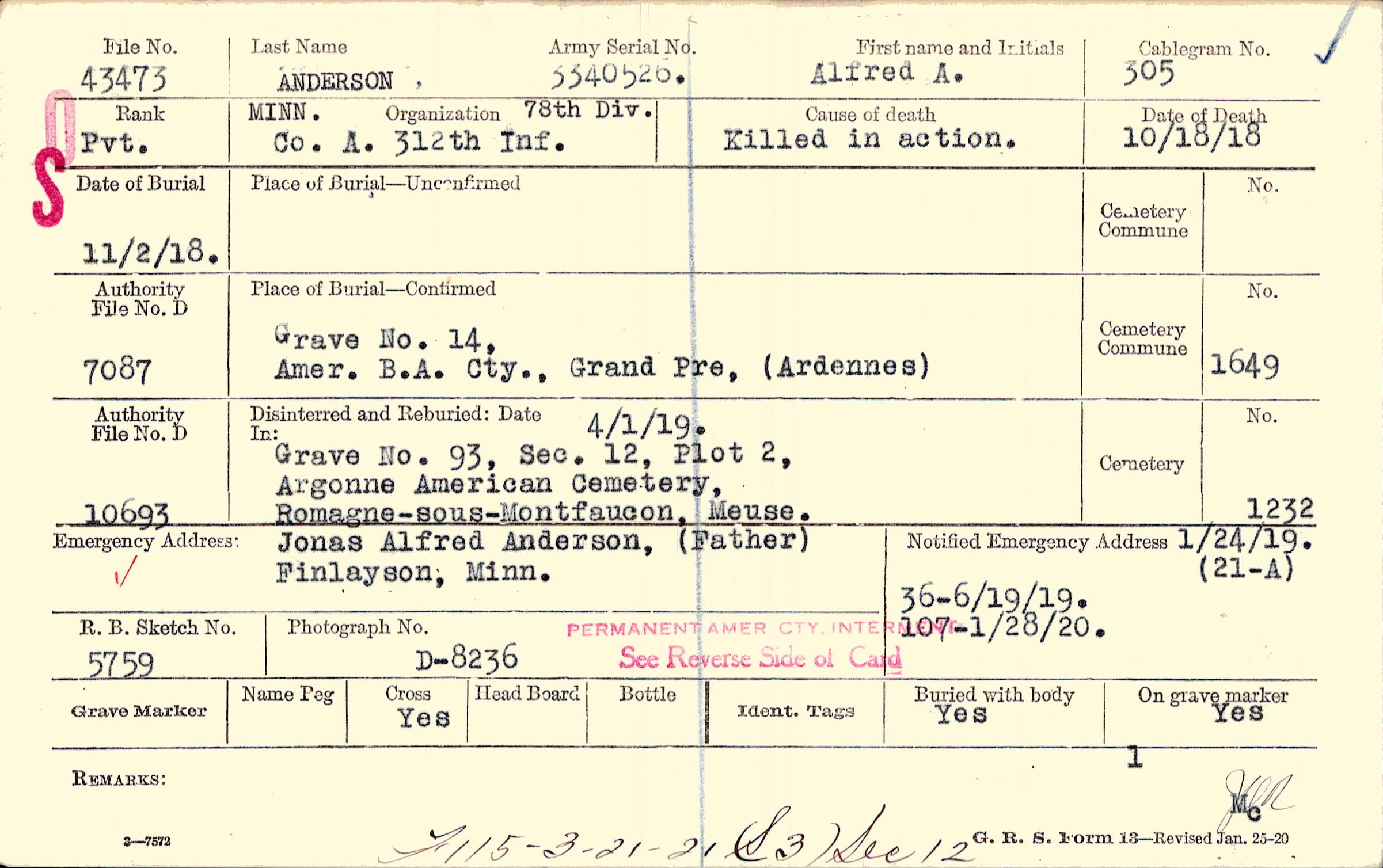 Grave 14, Amer. B/A Cty., Grand Pre, (Ardennes)