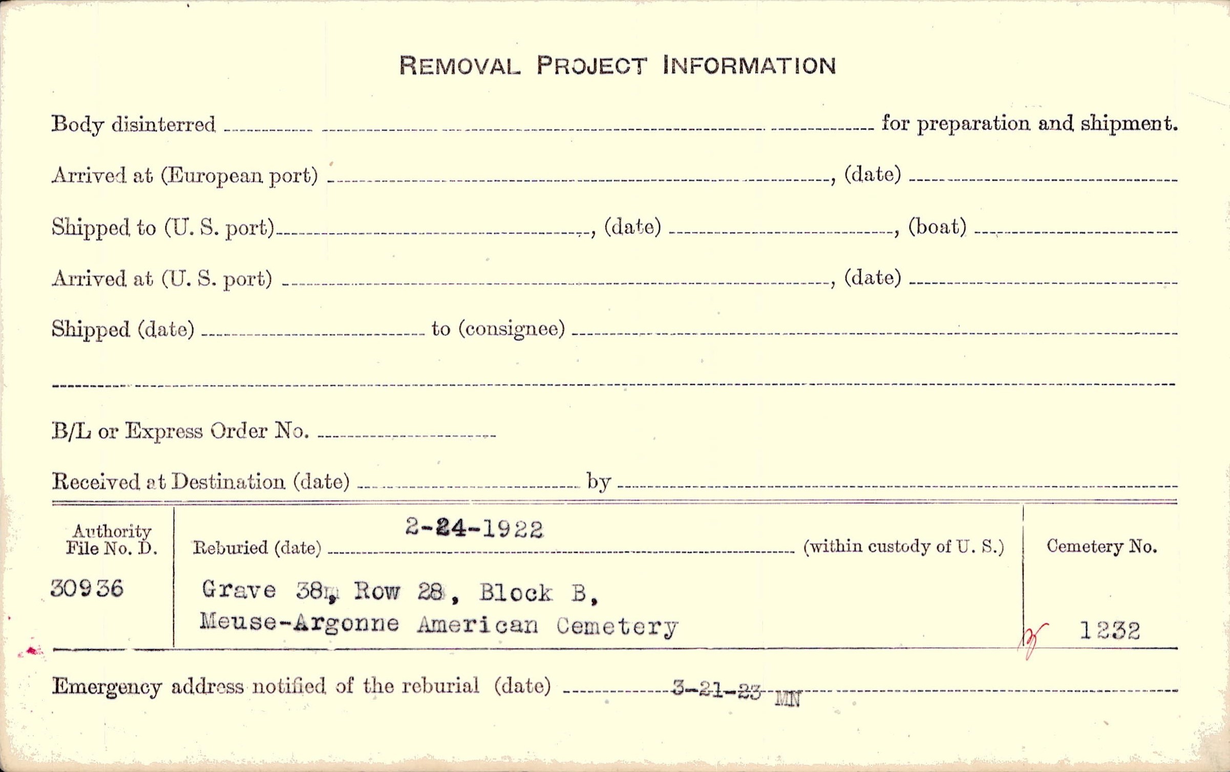 Grave 93, Section 12, Plot 2, Argonne American Cemetery, Romagne-sous-Montfaucon, Meuse
