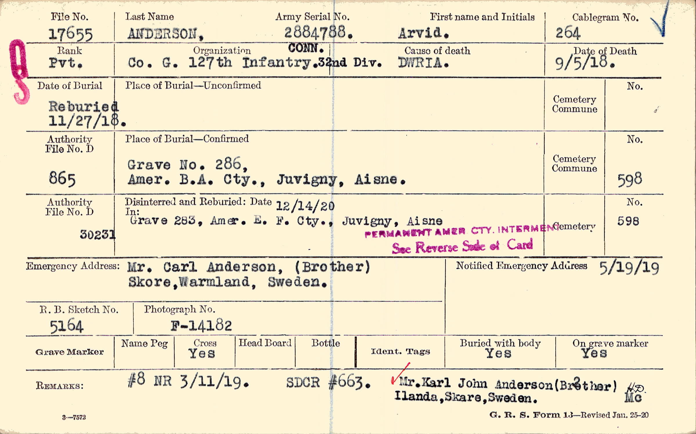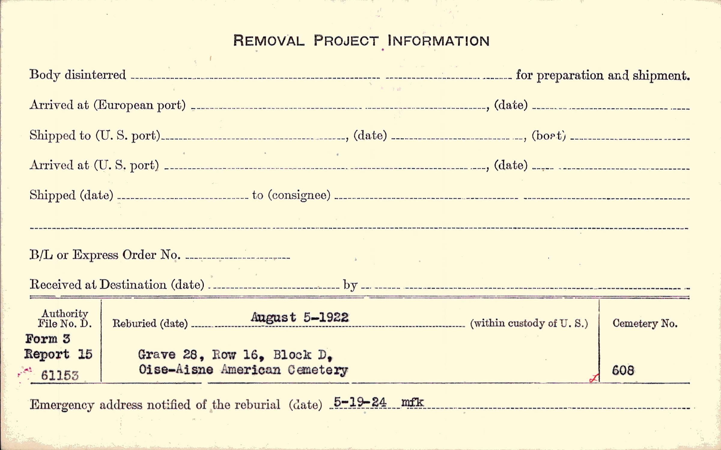Grave 286, Amer. B/A Cty., Juvigny, Aisne.