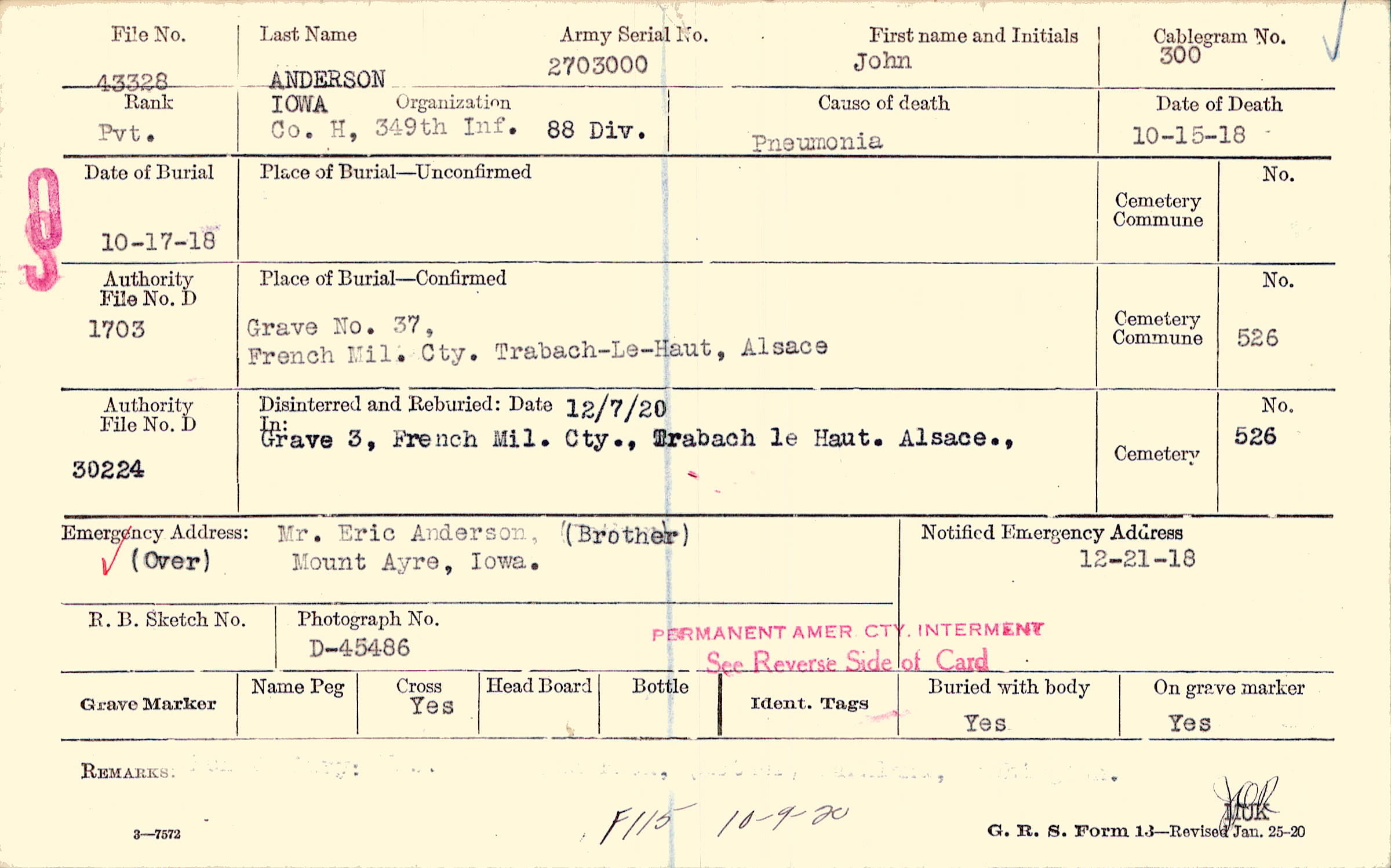 | Permanent Burial in Foreign Cemetery |