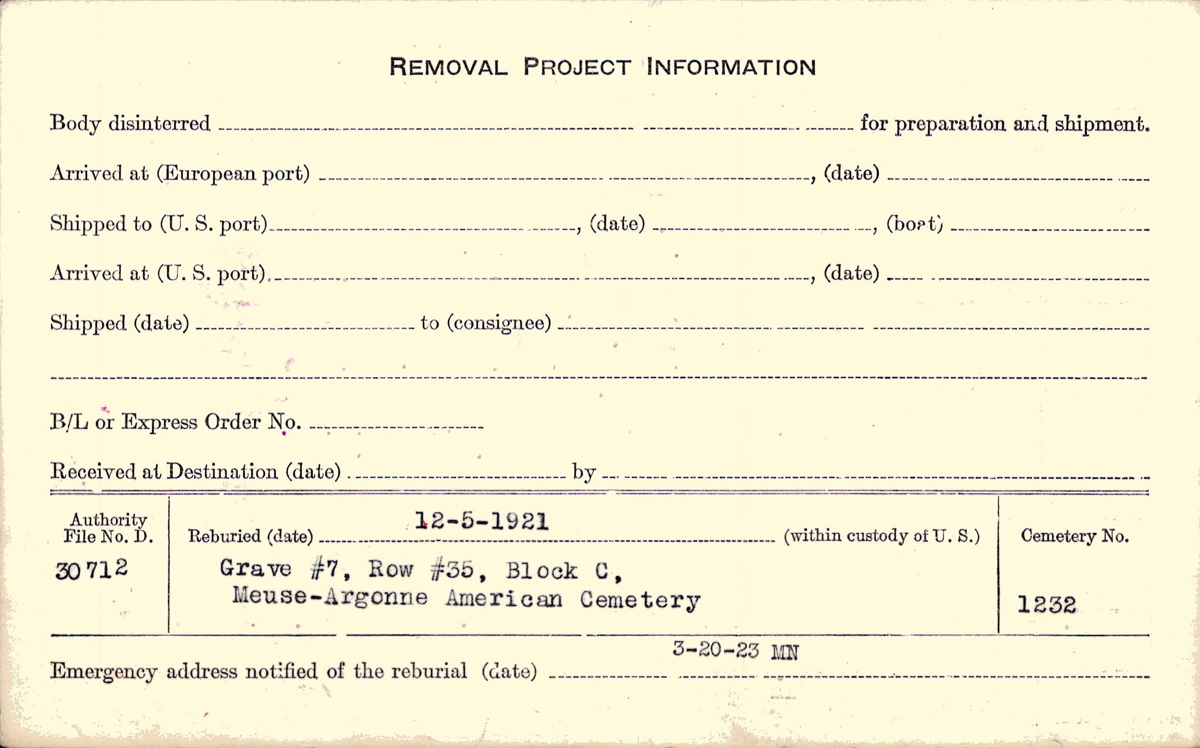 Grave #15, Plot B,Amer. B/A Cty., Sommerance, Ardennes.