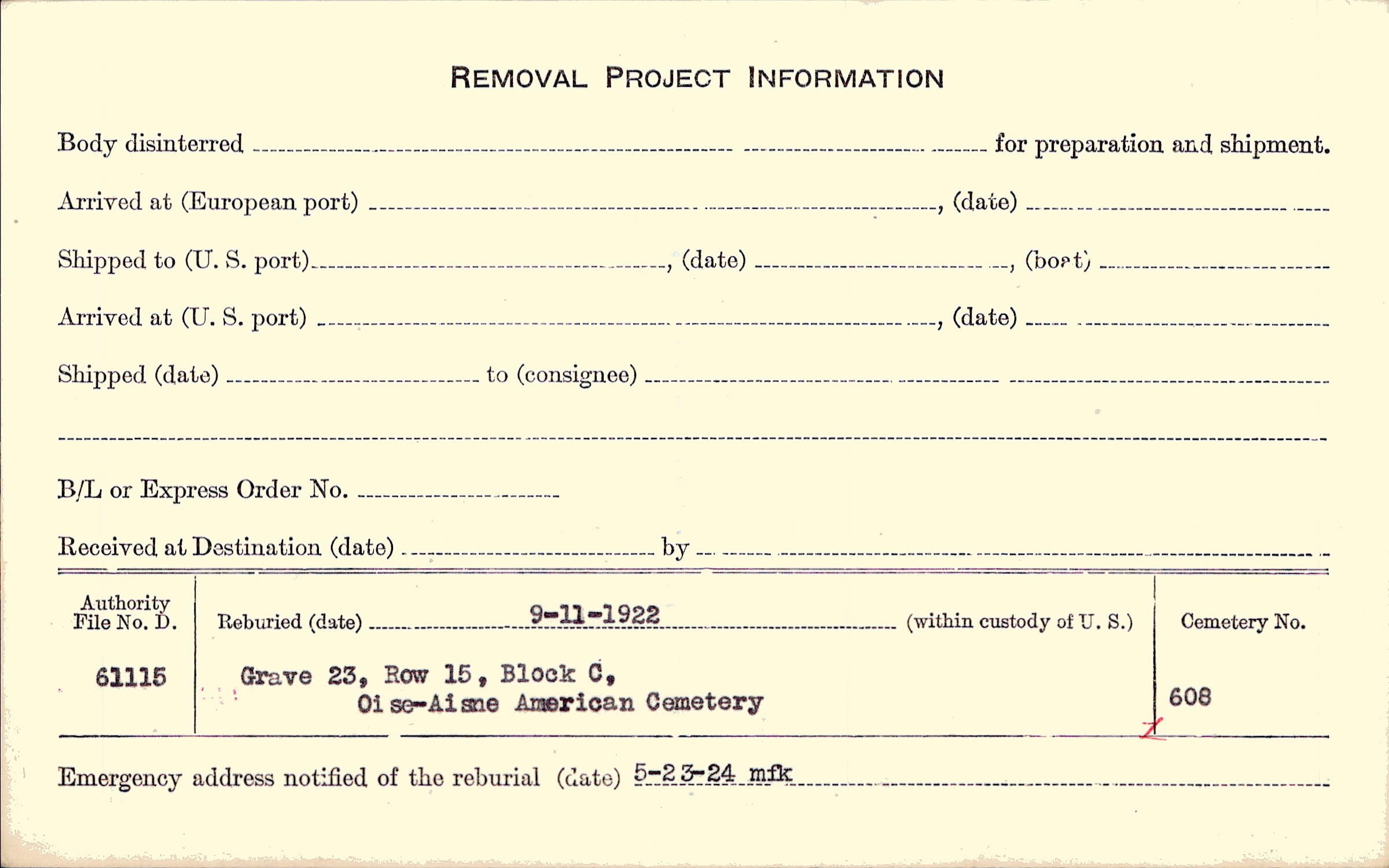 Grave 119, Row 5, American Cemetery, Noyers, Loir-et-Cher
