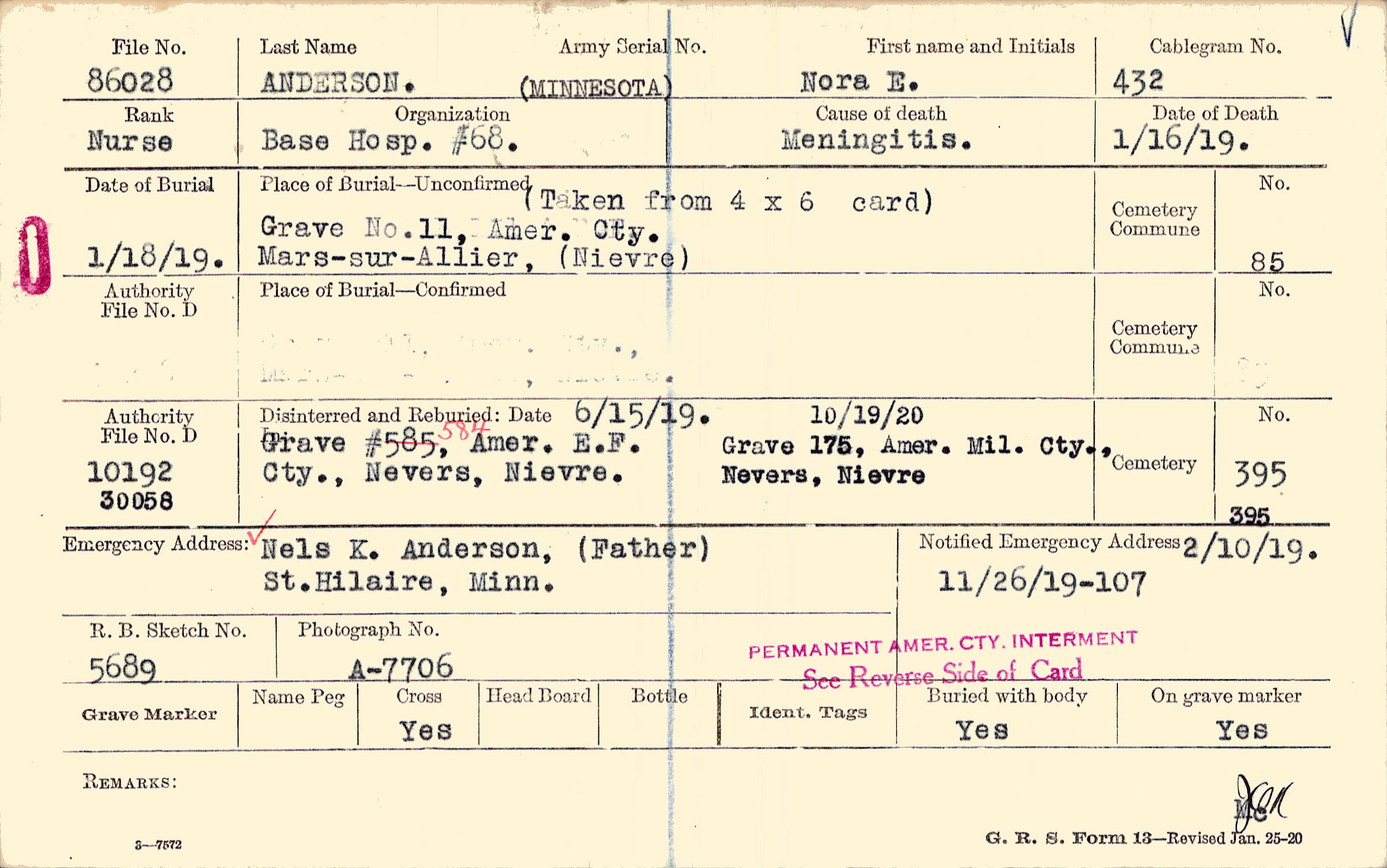 Grave No. 11, Amer. Cty., ,Mars-sur-Allier, (Nievre)
