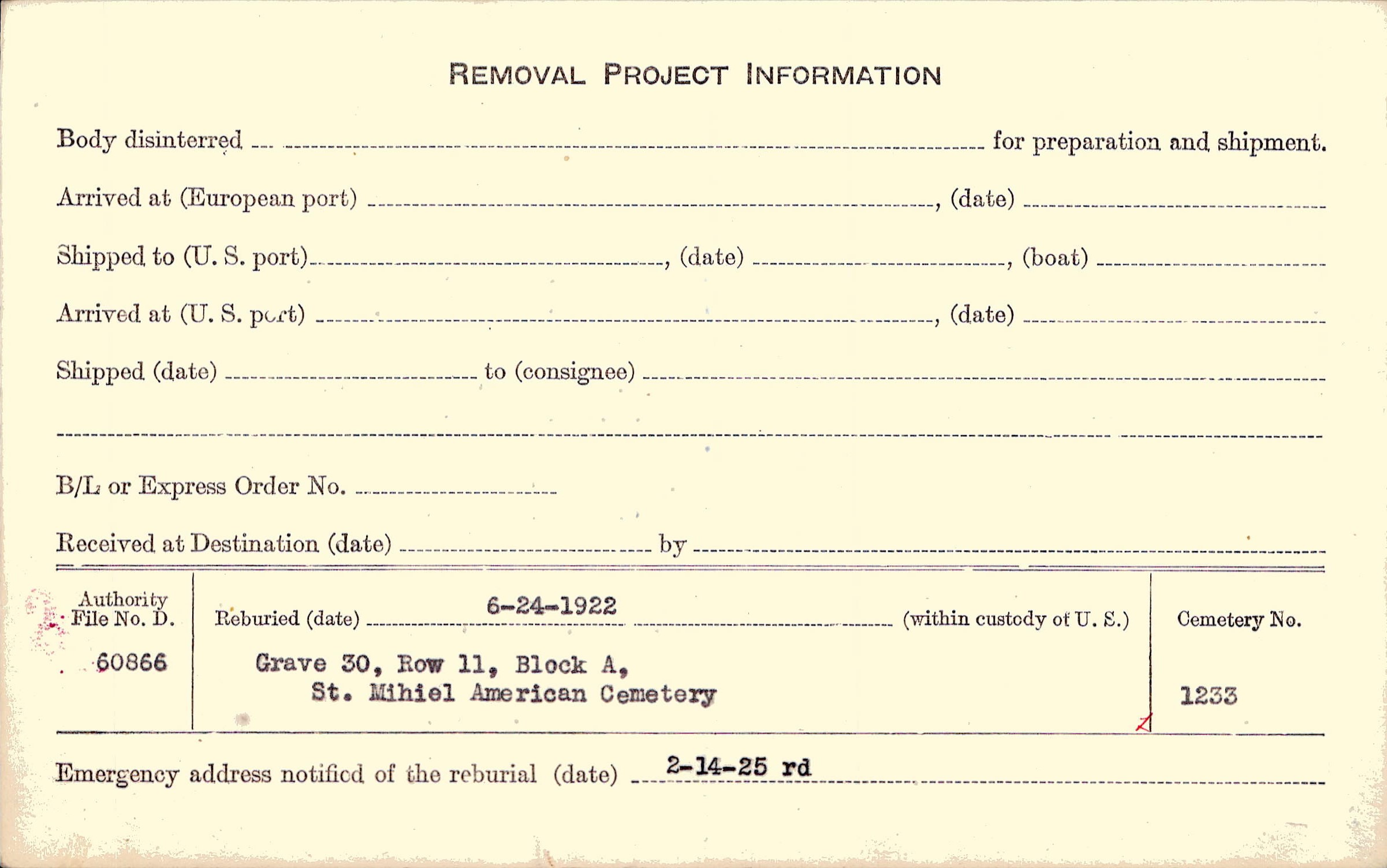 | Permanent Burial in Foreign Cemetery |