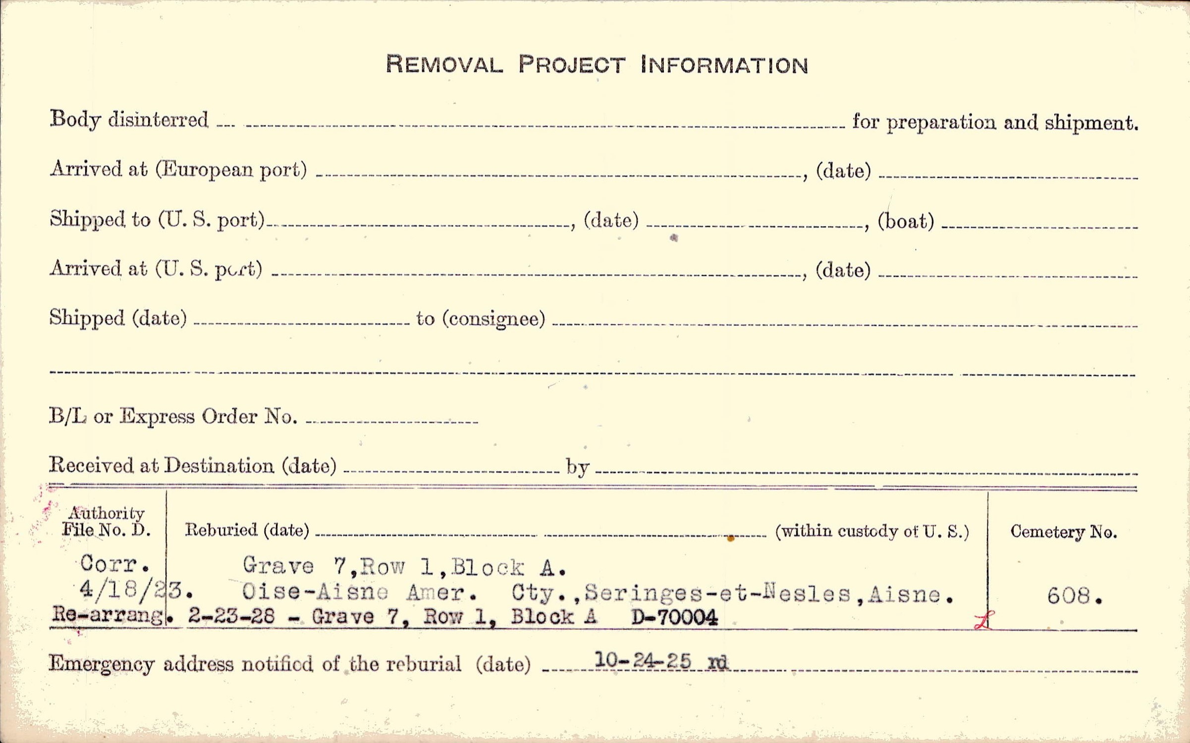 Grave #93, plot #2, Sect. N, Amer. B/A Cty., Seringes-et-Nesles, Aisne
