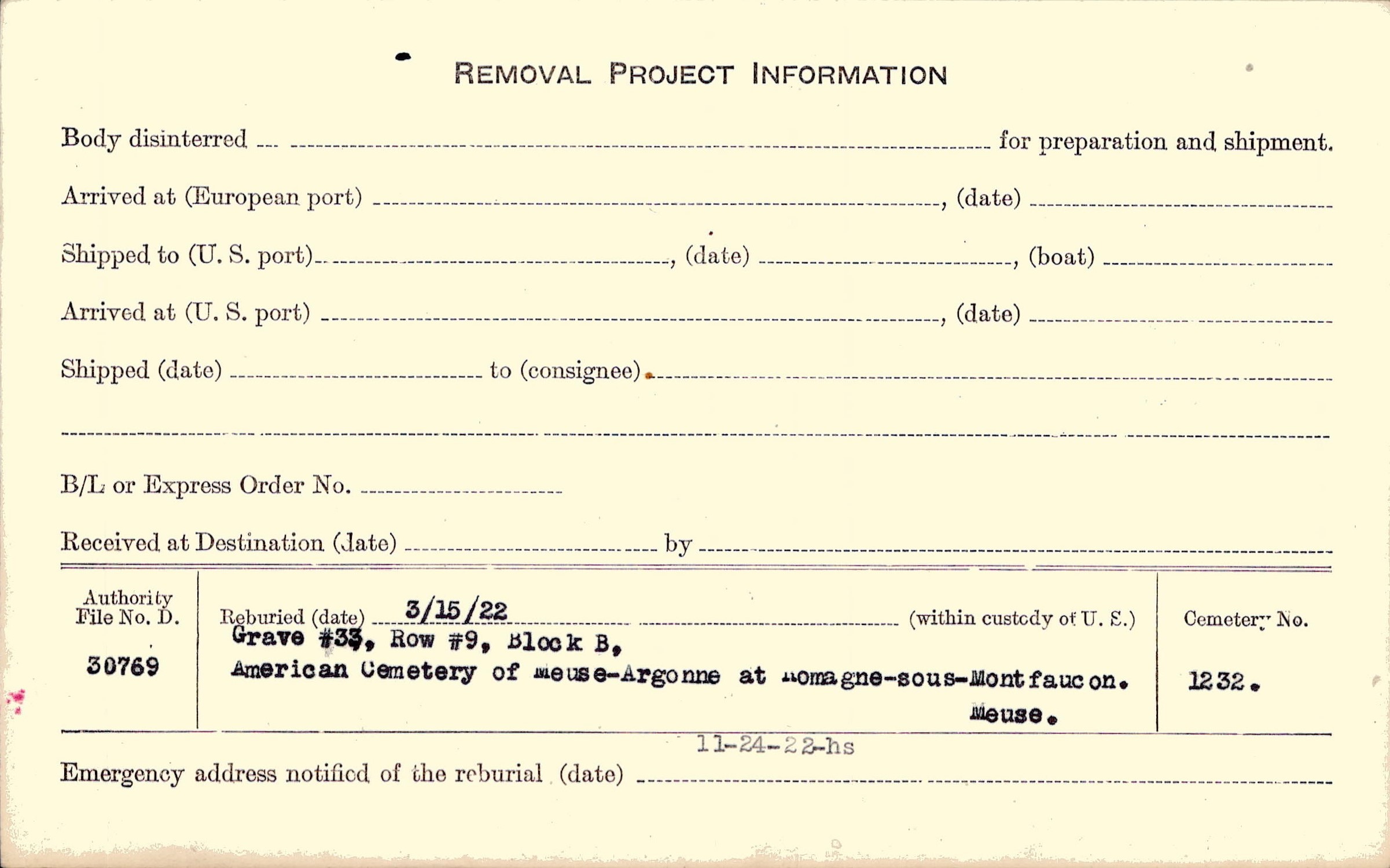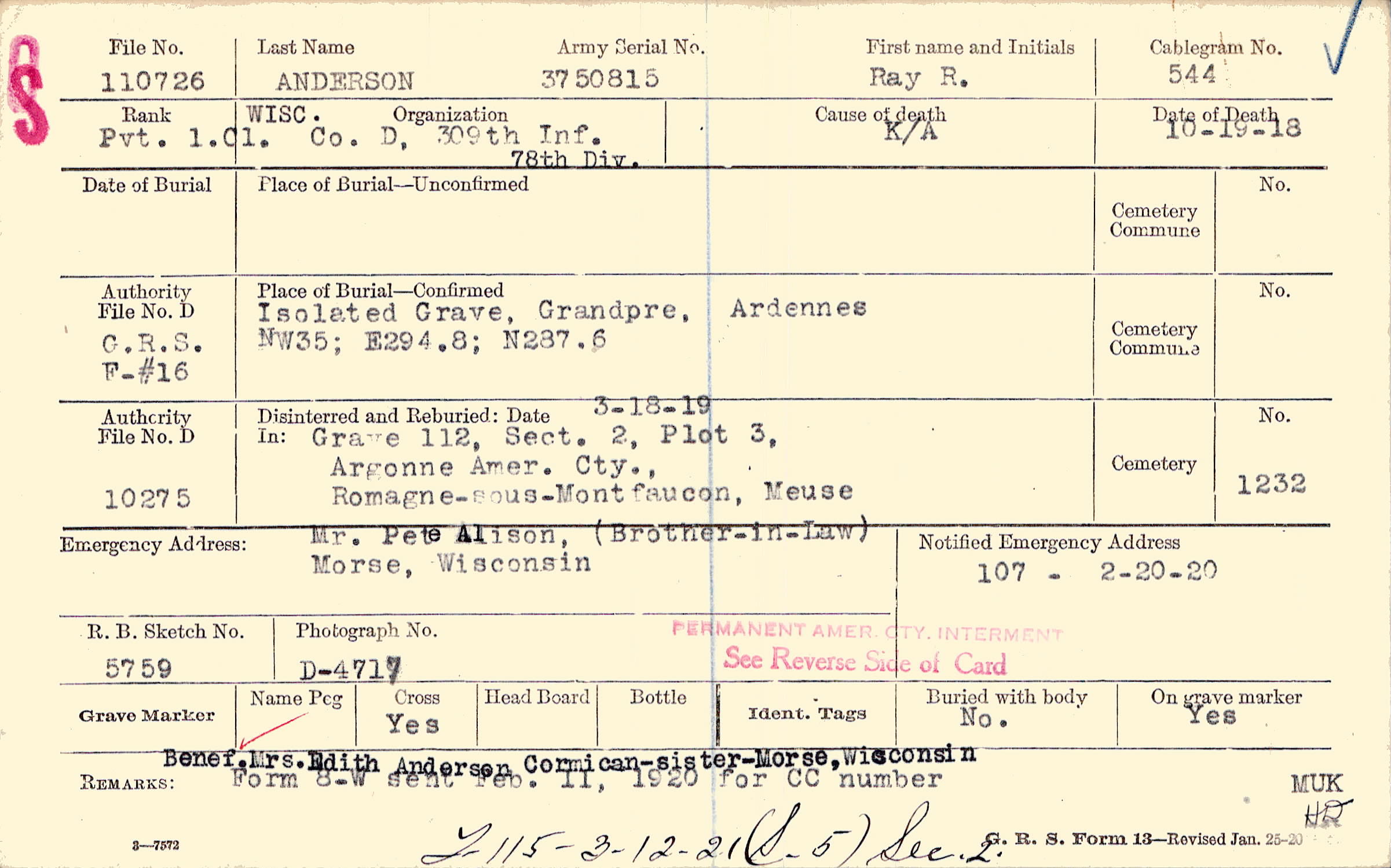 Grave 112, Section 2, Plot 3, Argonne American Cemetery, Romagne-sous-Montfaucon, Meuse