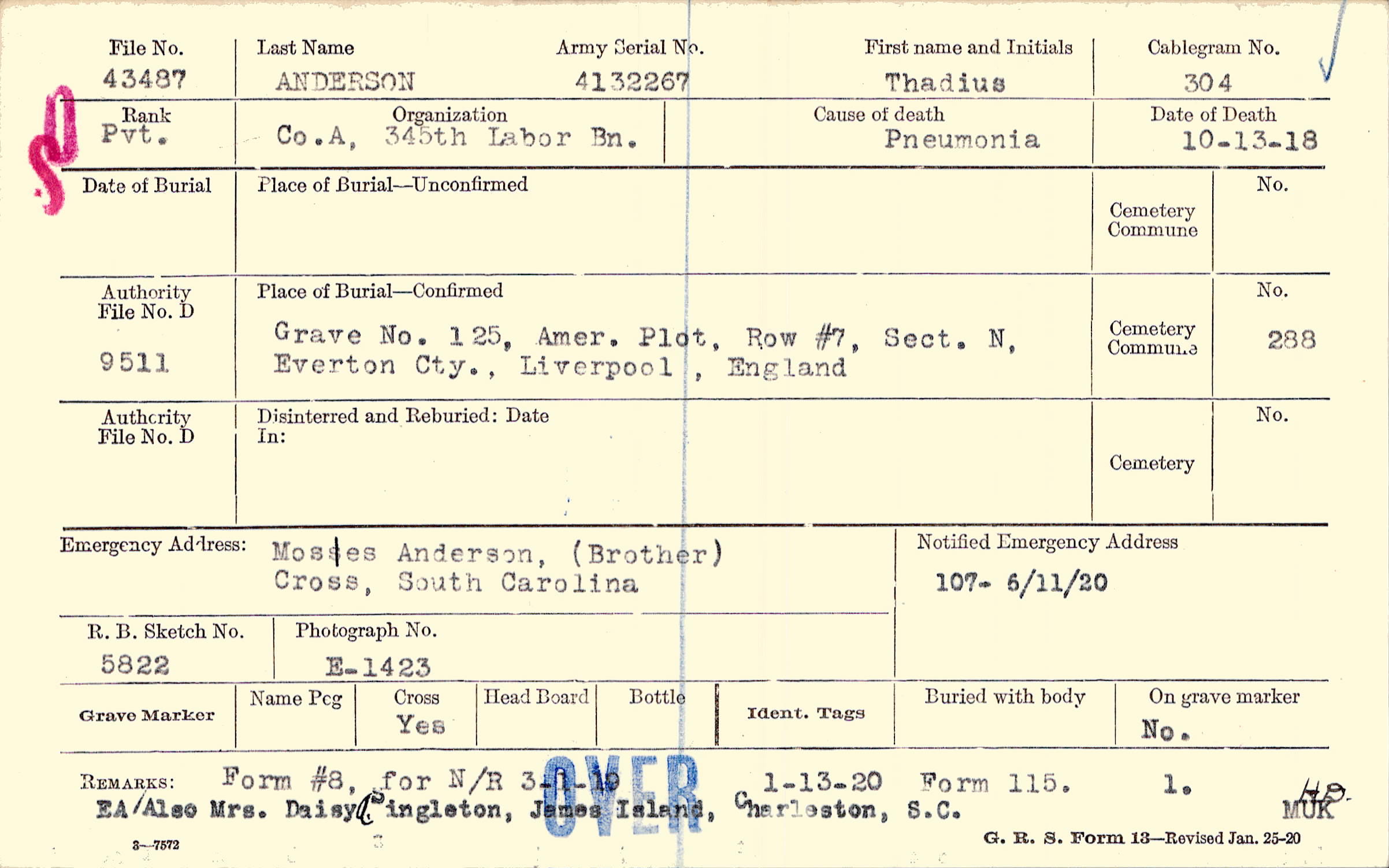 Grave 125, Amer. Plot, Row #7, Sect. N, Everton Cty., Liverpool, England