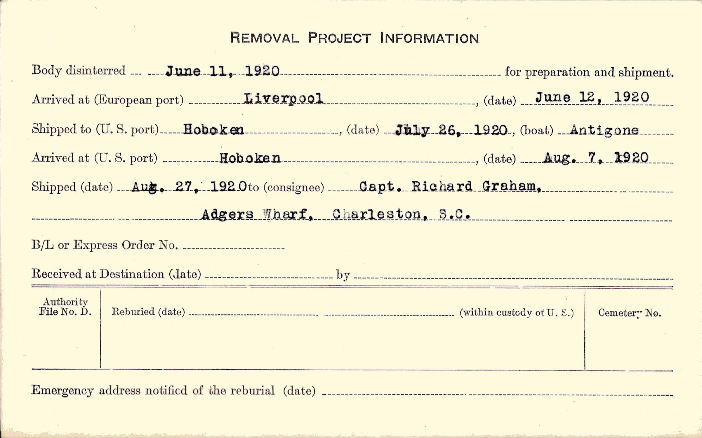 to Capt. Richard Graham, Adgers Wharf, Charleston, S.C.