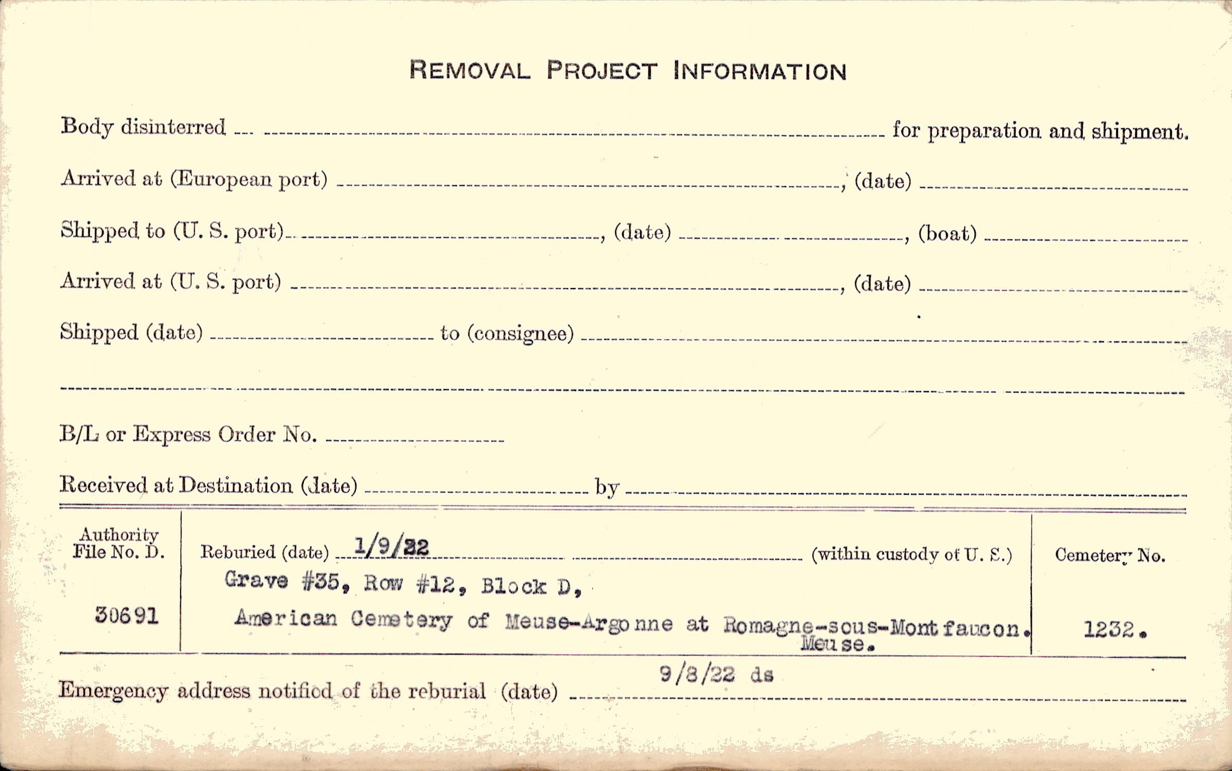 Grave 58, Plot B., Amer, B. A. Cty., Malancourt, Meuse