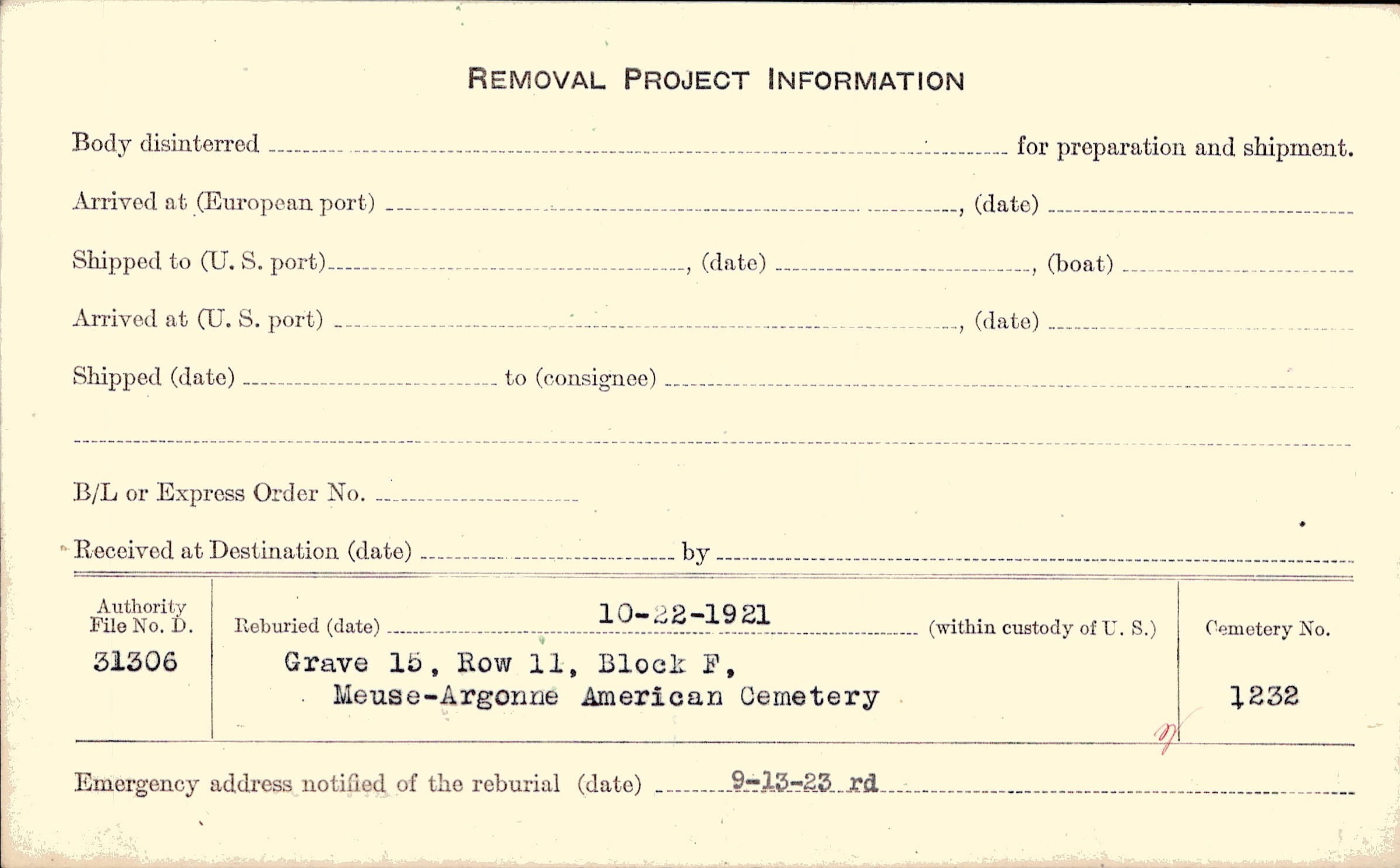 | Permanent Burial in Foreign Cemetery |