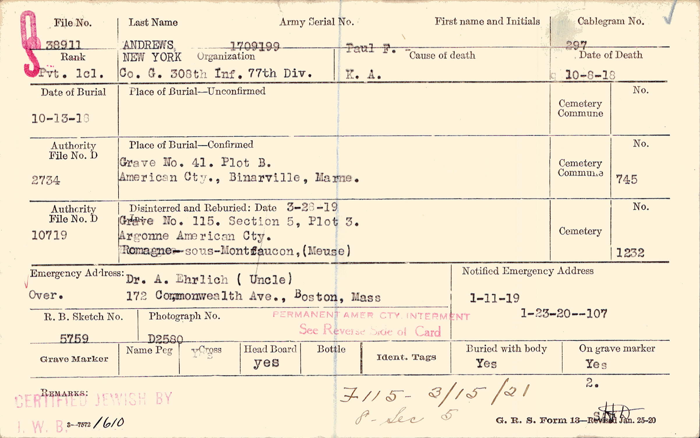 Grave 41. Plot B., American Cty., Binarville, Marne.