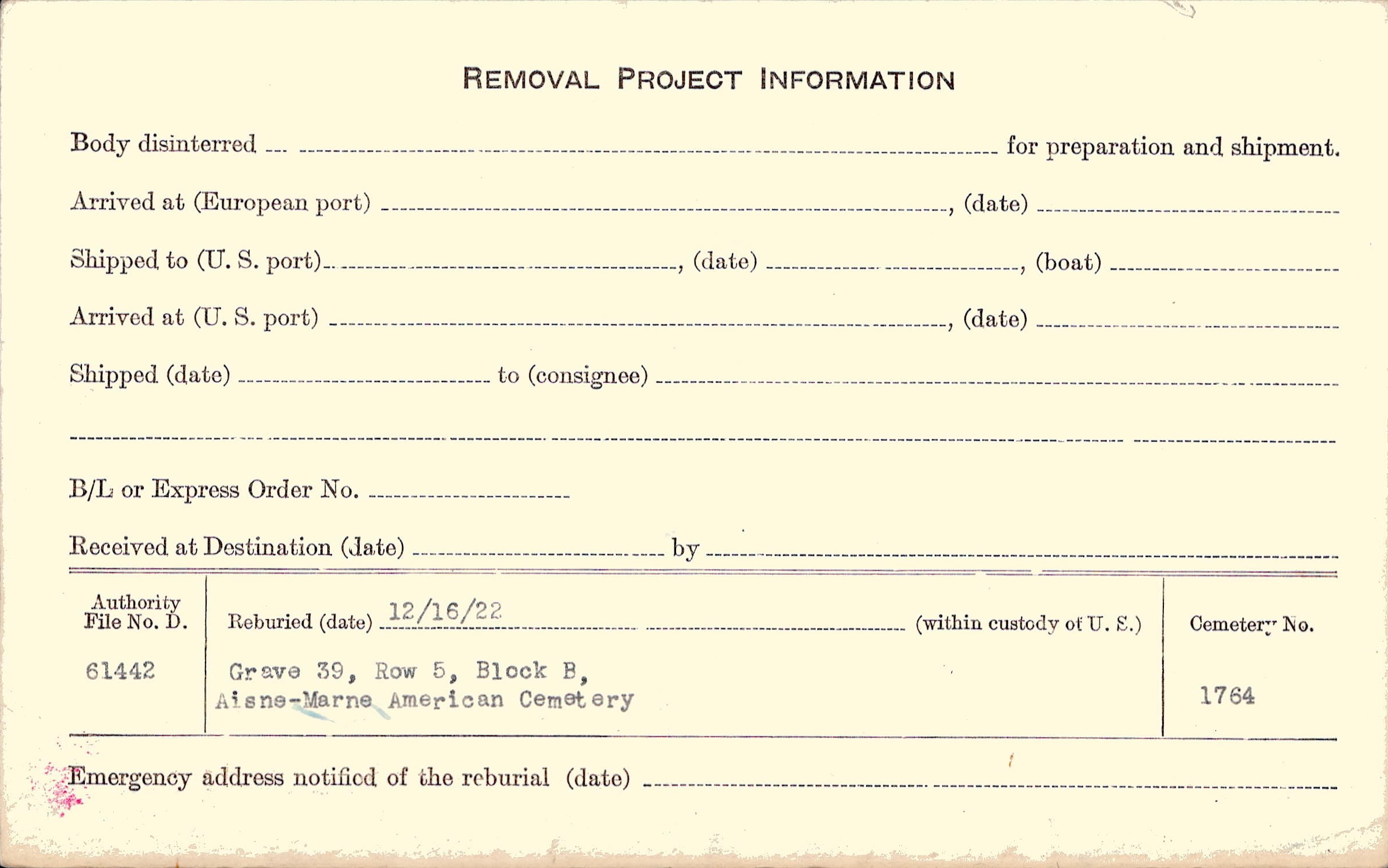 | Permanent Burial in Foreign Cemetery |