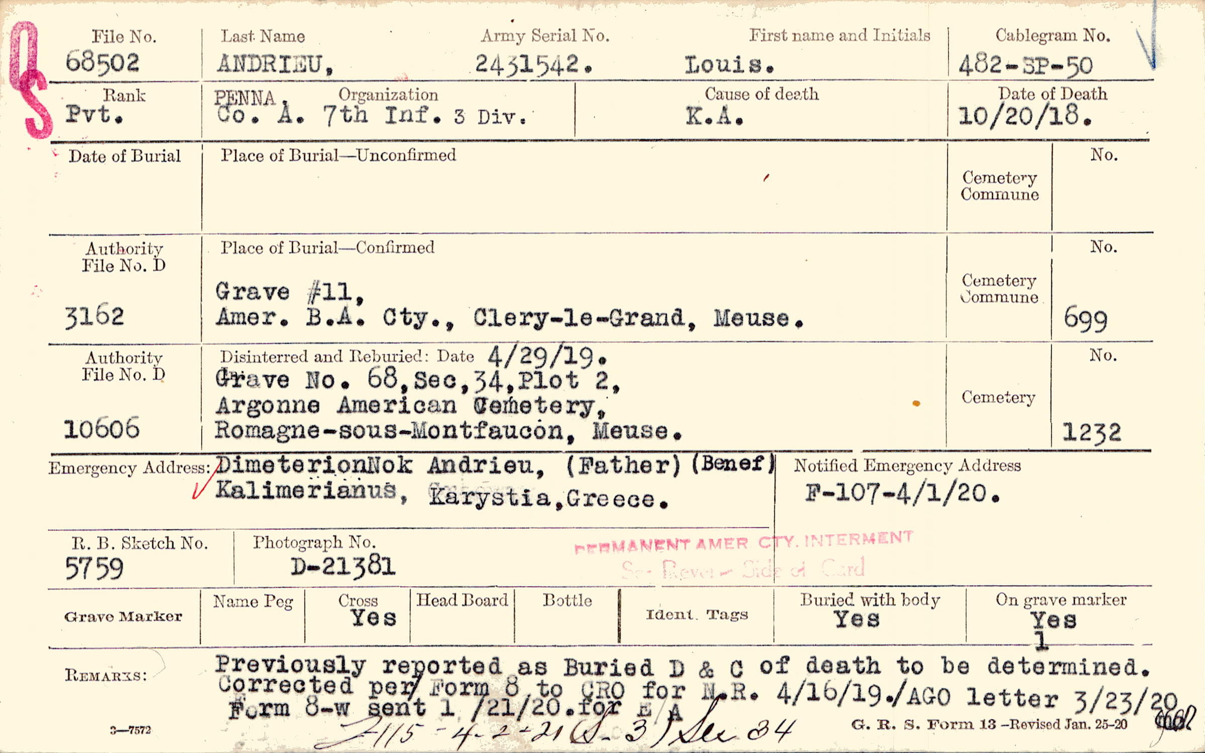Army Serial No. |