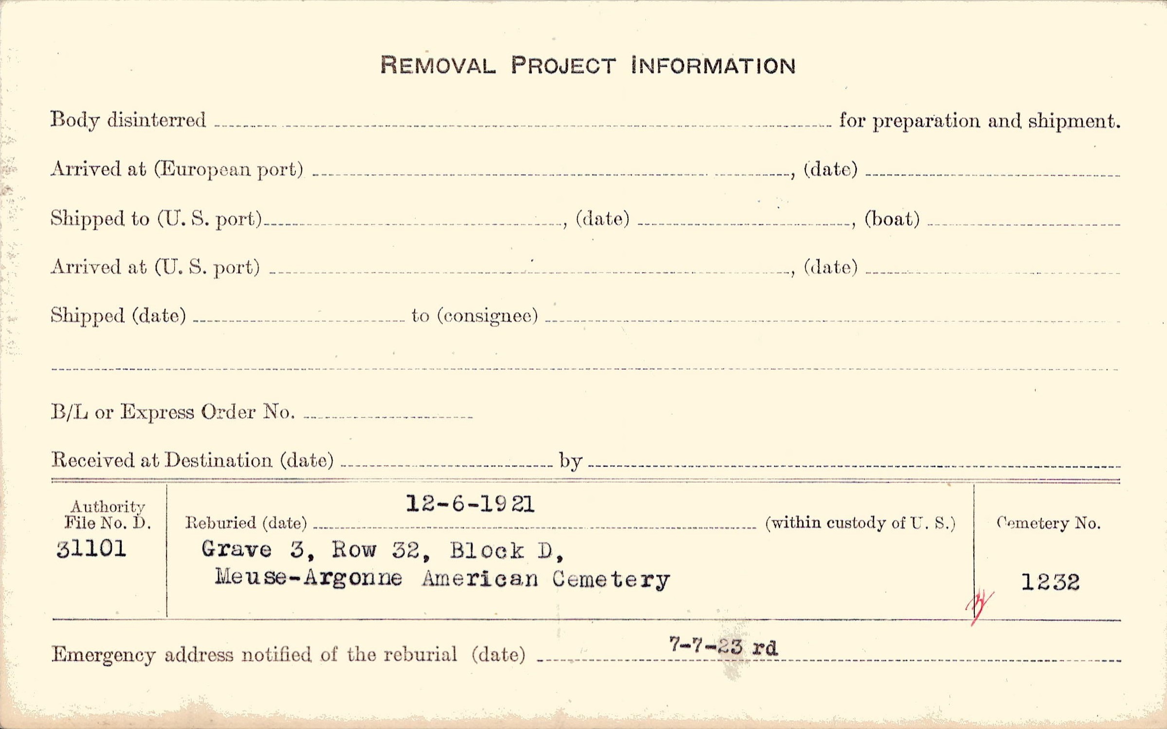 | Permanent Burial in Foreign Cemetery |