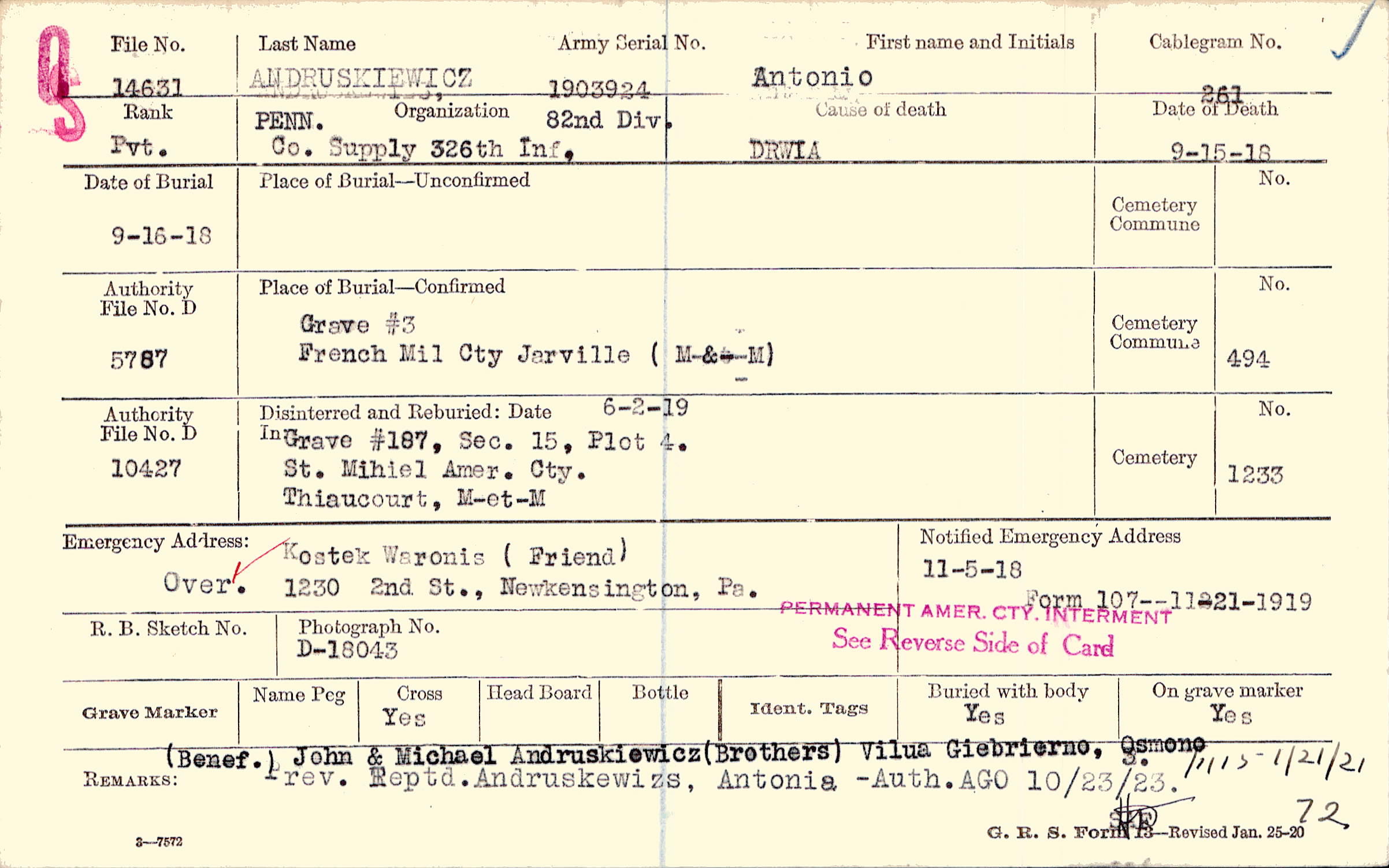 Grave #3, French Mil Cty, Jarville, M-&-M