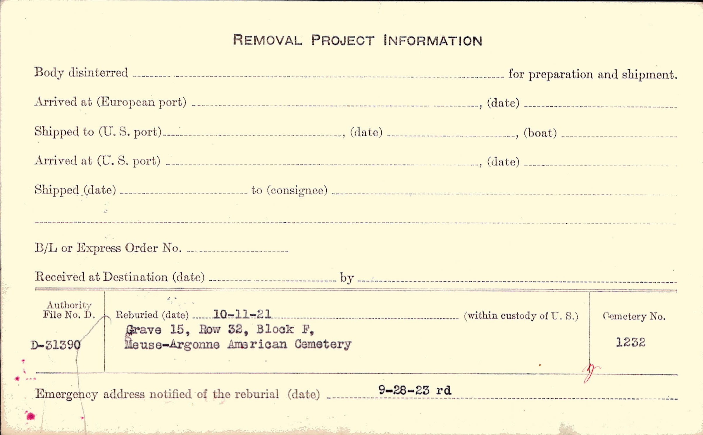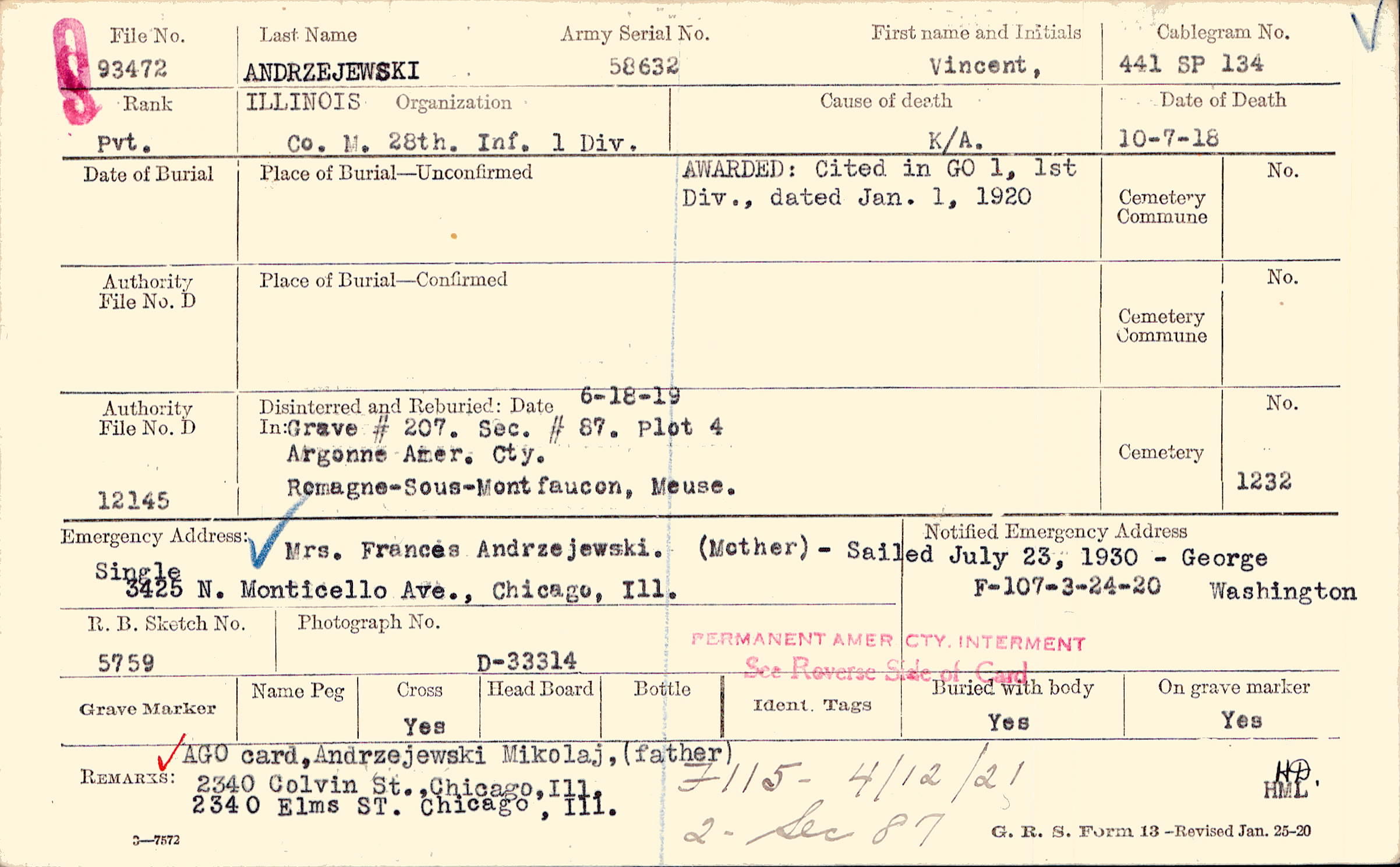 Grave 207, Section 87, Plot 4, Argonne American Cemetery, Romagne-sous-Montfaucon, Meuse
