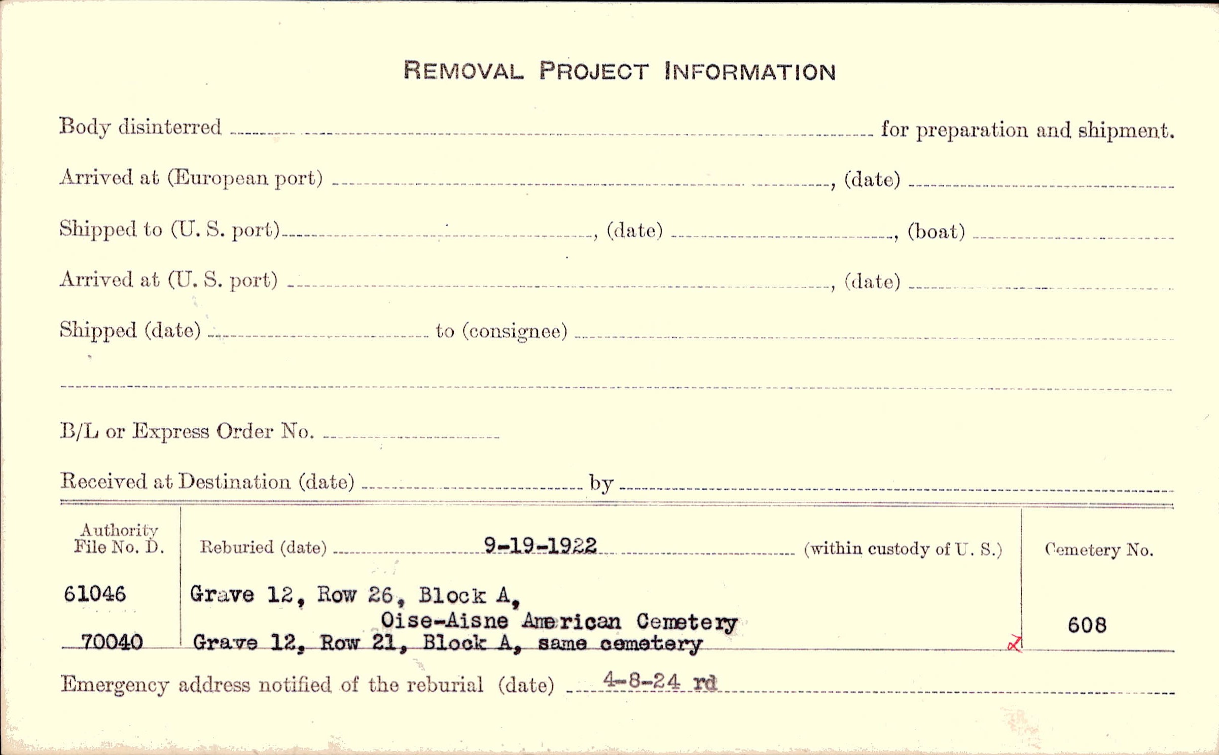 Prior Burial in Foreign Cemetery |