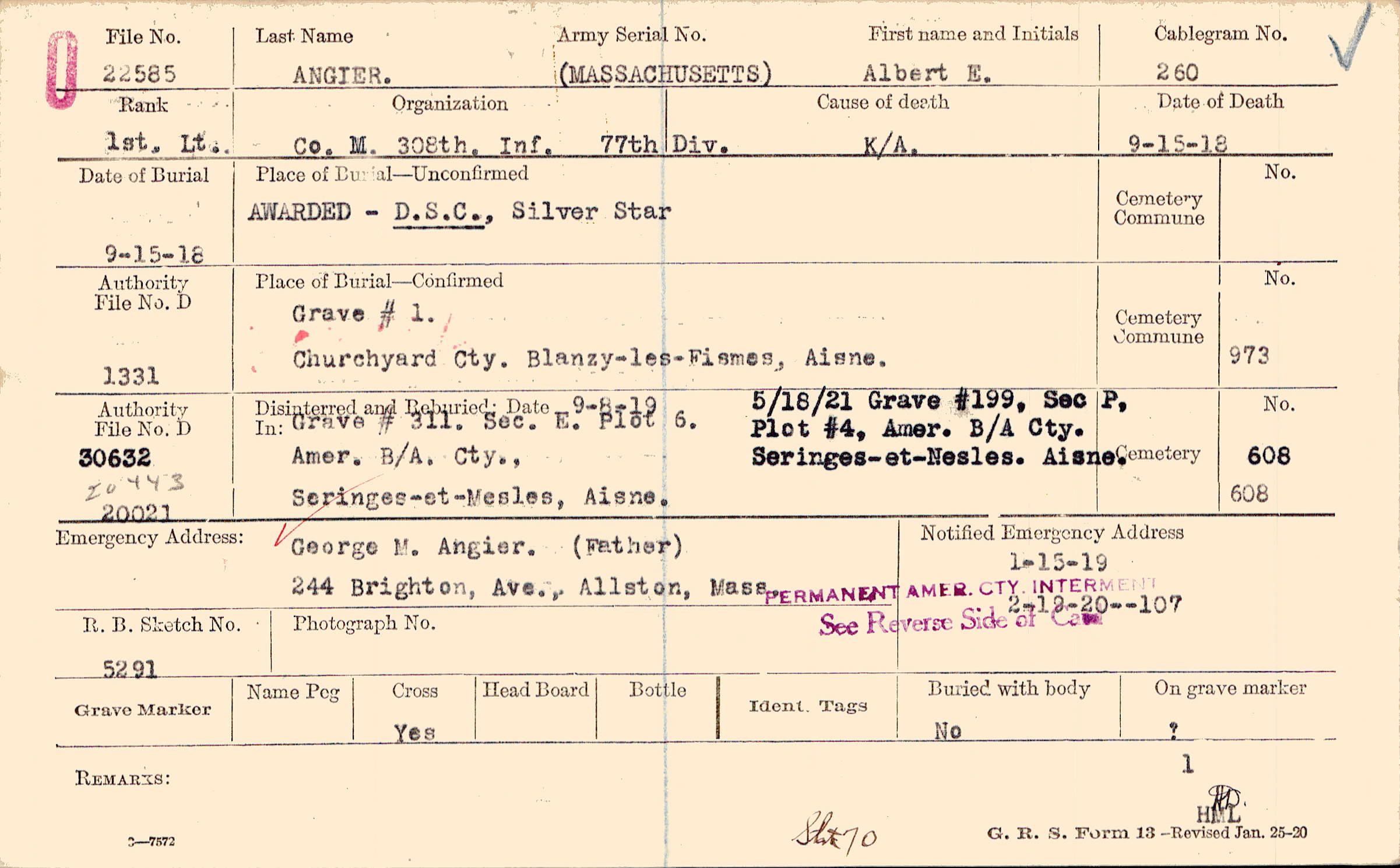 George M. Angier. (Father), 244 Brighton Ave., Allston, Mass.