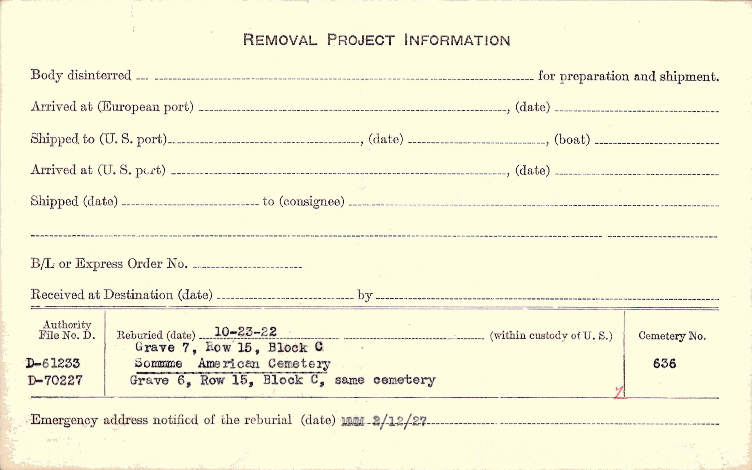 7/5/1918, F Form 107: 11/19/1920 Rtd