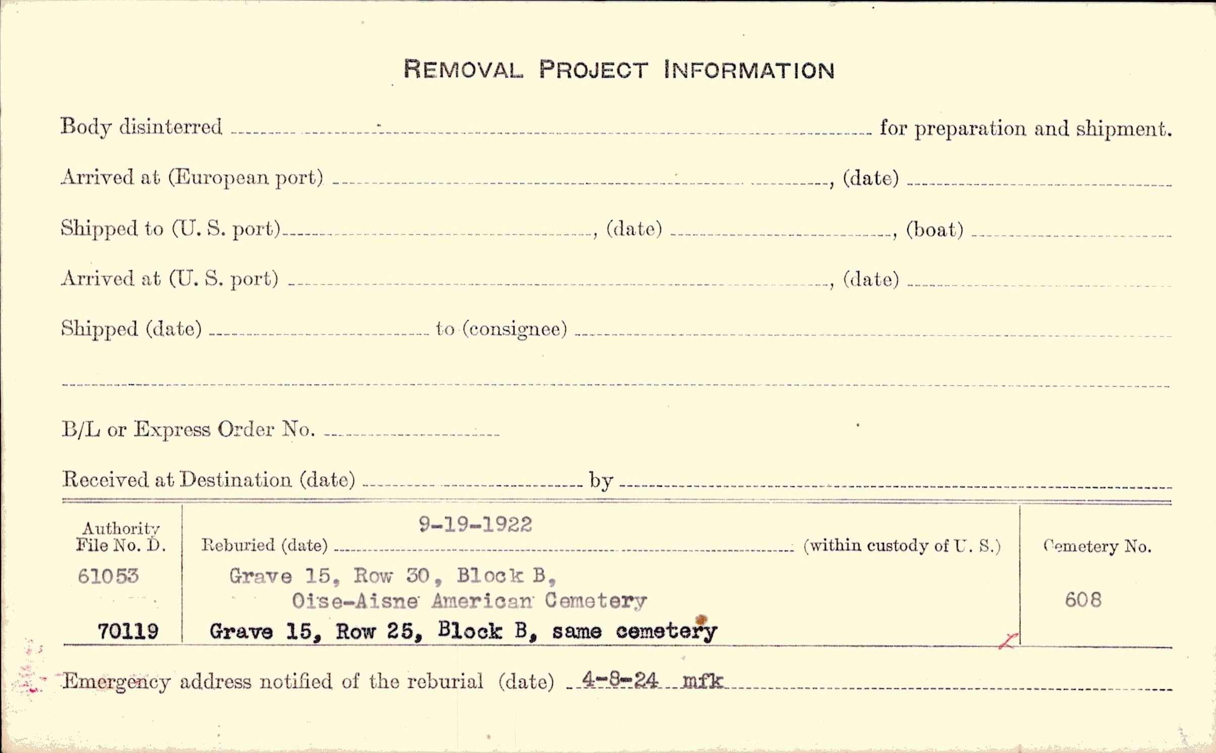Prior Burial in Foreign Cemetery |