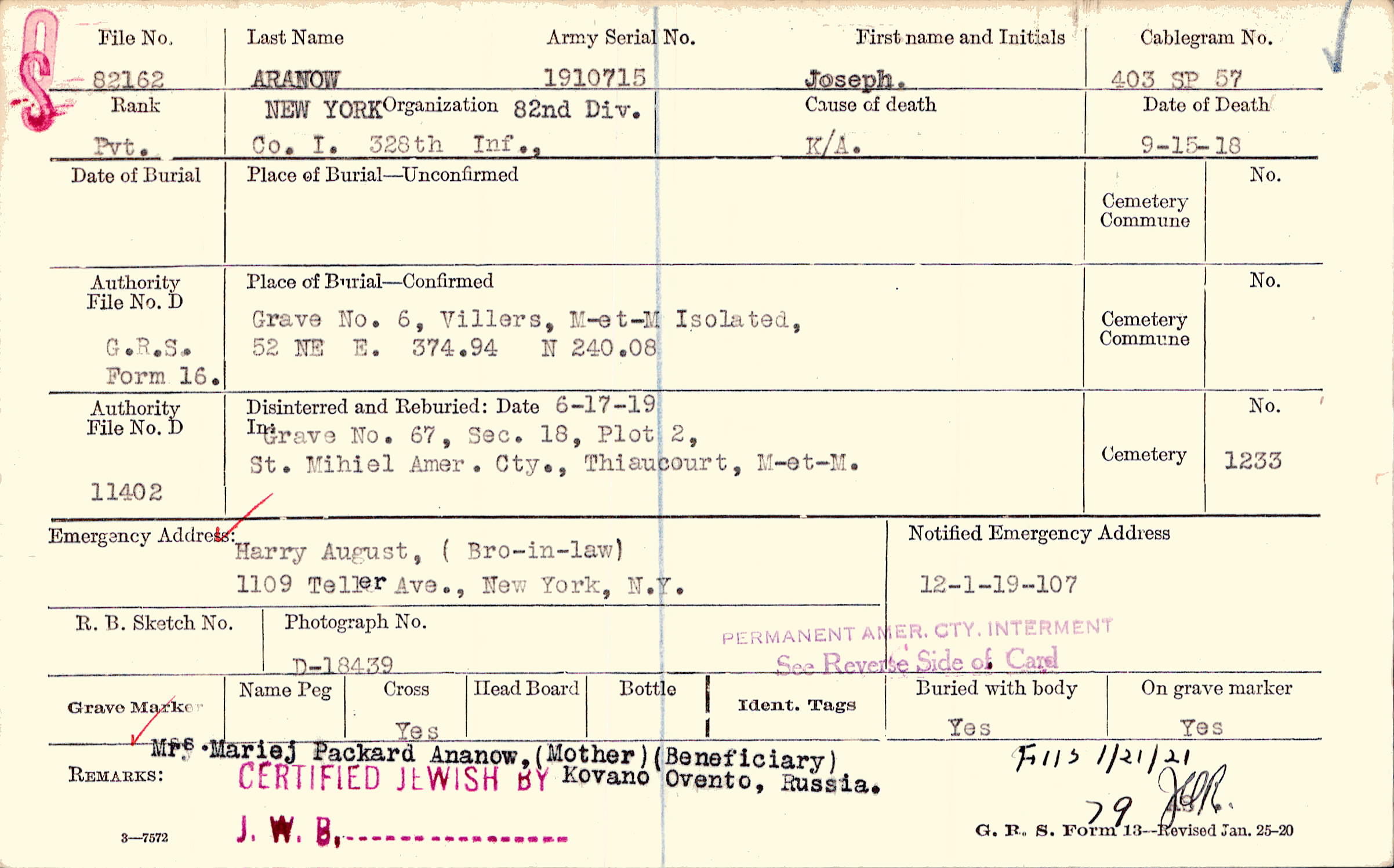 Mrs. Mariej Packard Ananow,(Mother) (Beneficiary) Kovano Ovento, Russia., F115 1/21/21 79