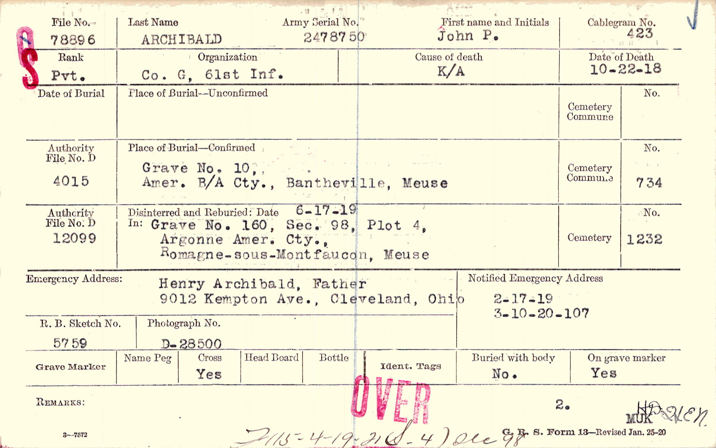Henry Archibald, Father, 9012 Kempton Ave., Cleveland, Ohio