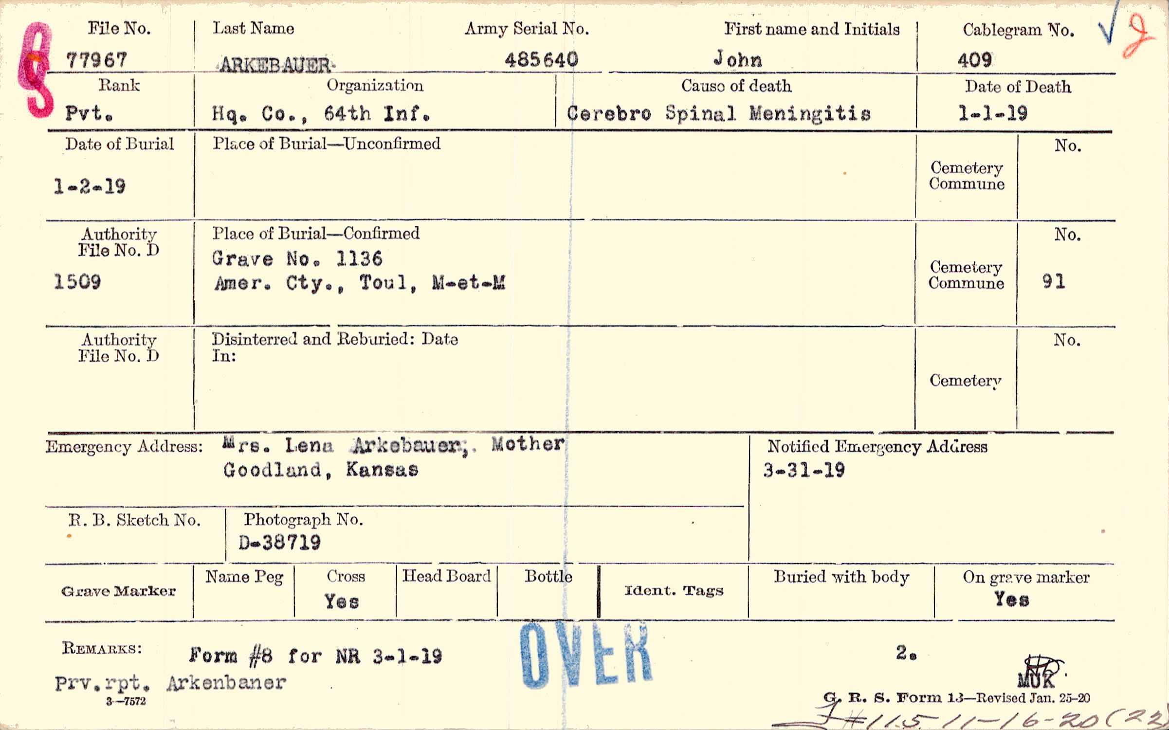 Grave 1136, Amer. Cty., Toul, M-et-M