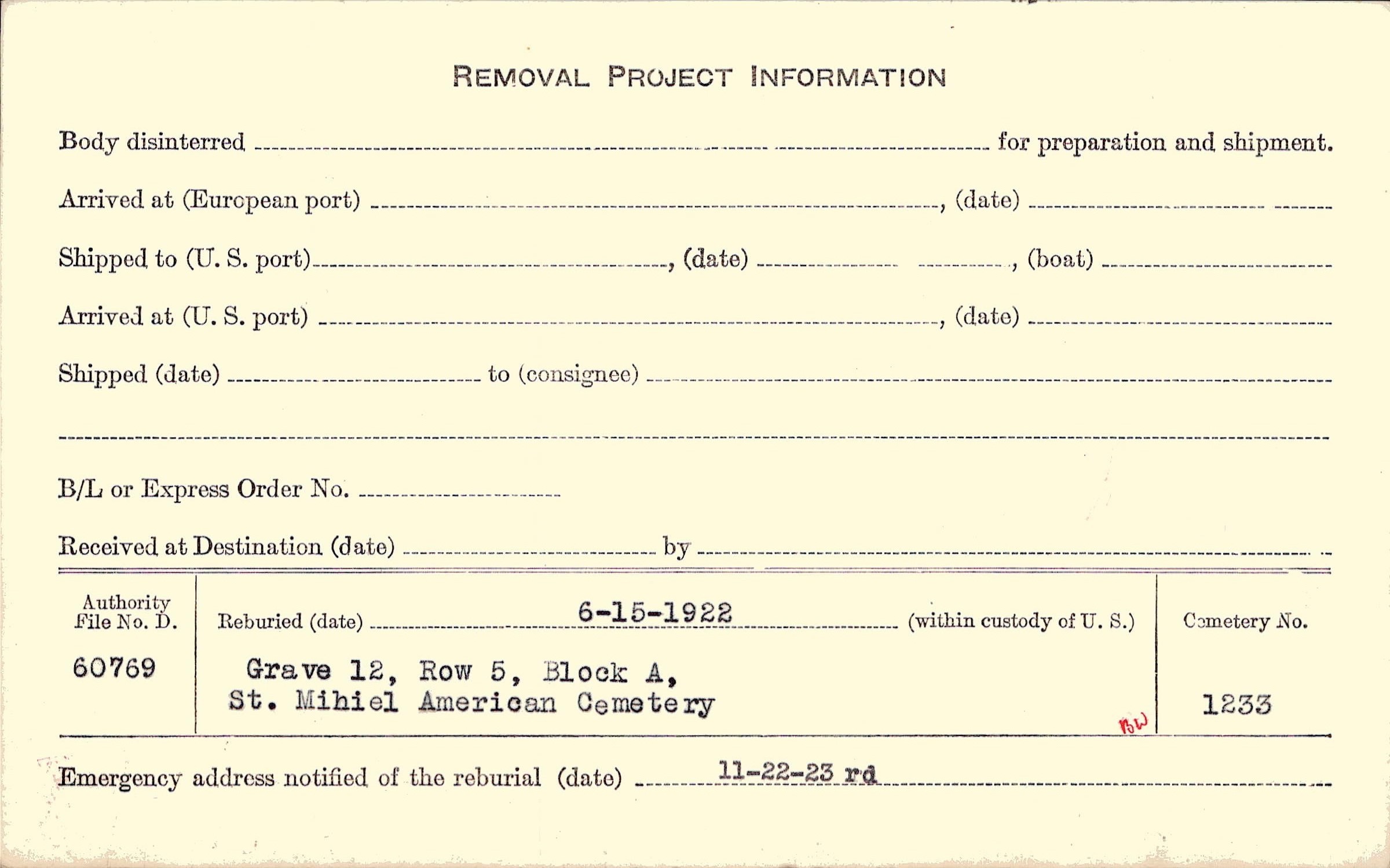 | Permanent Burial in Foreign Cemetery |
