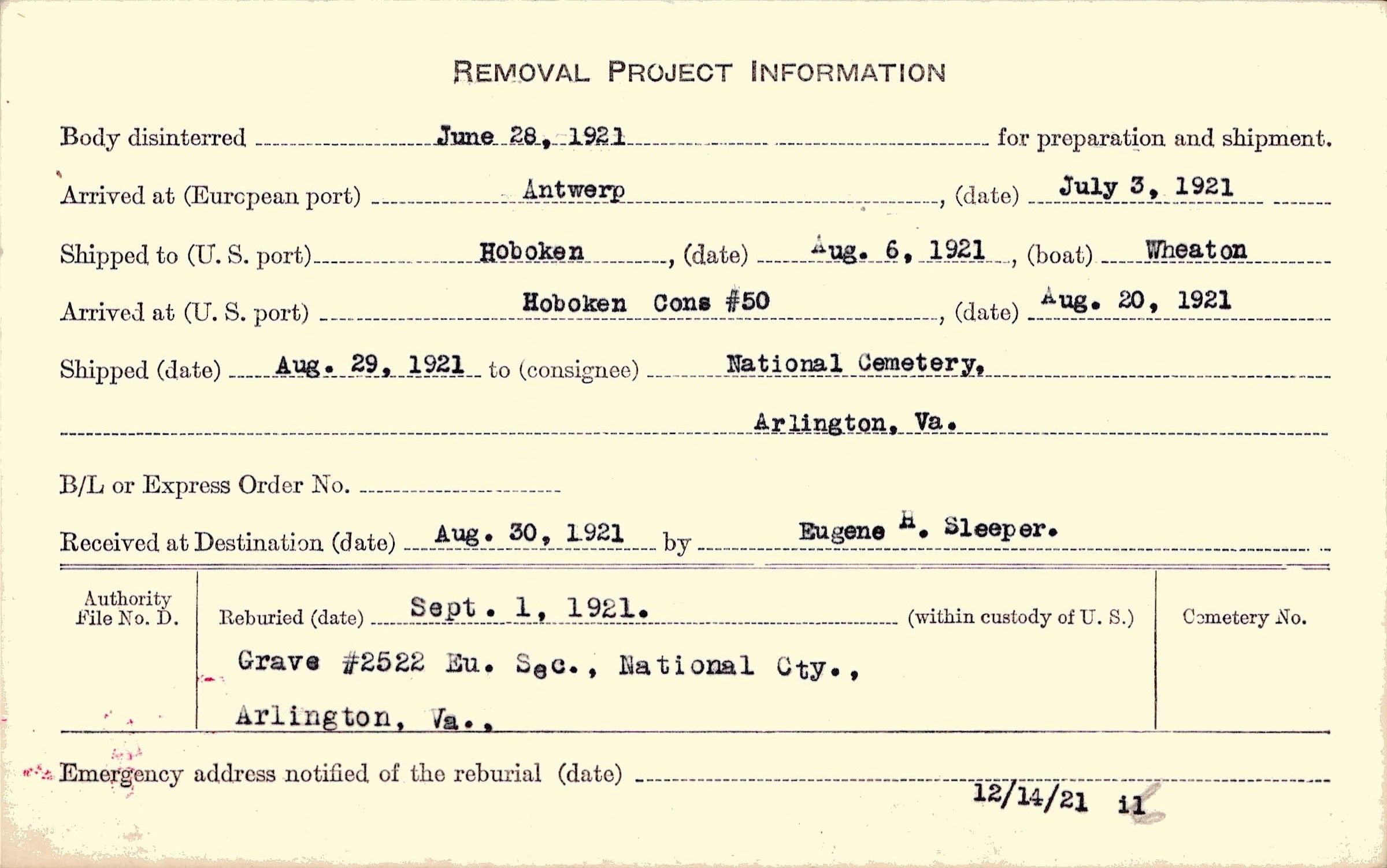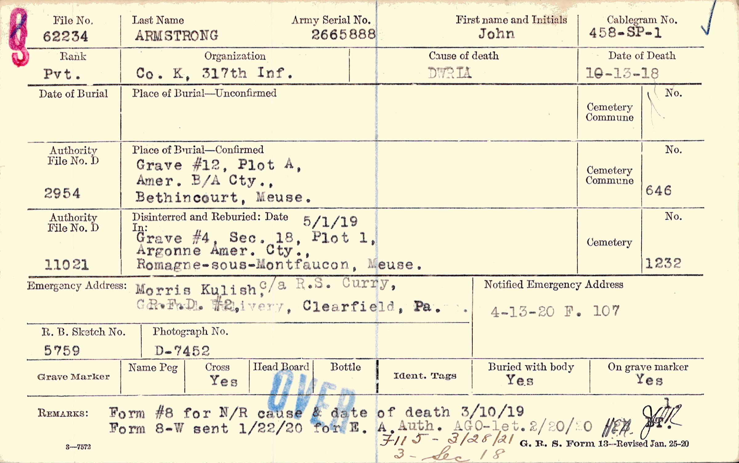 Grave #12, Plot A, Amer. B/A Cty., Bethincourt, Meuse.
