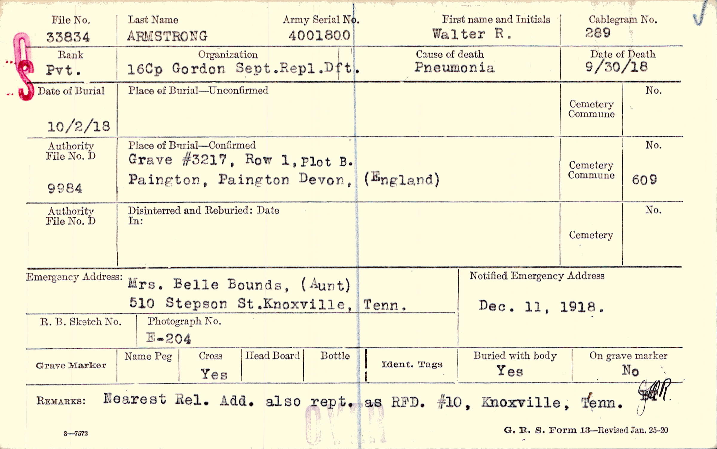 Grave #3217, Row 1, Plot B, Paington, Paington, Devon, England