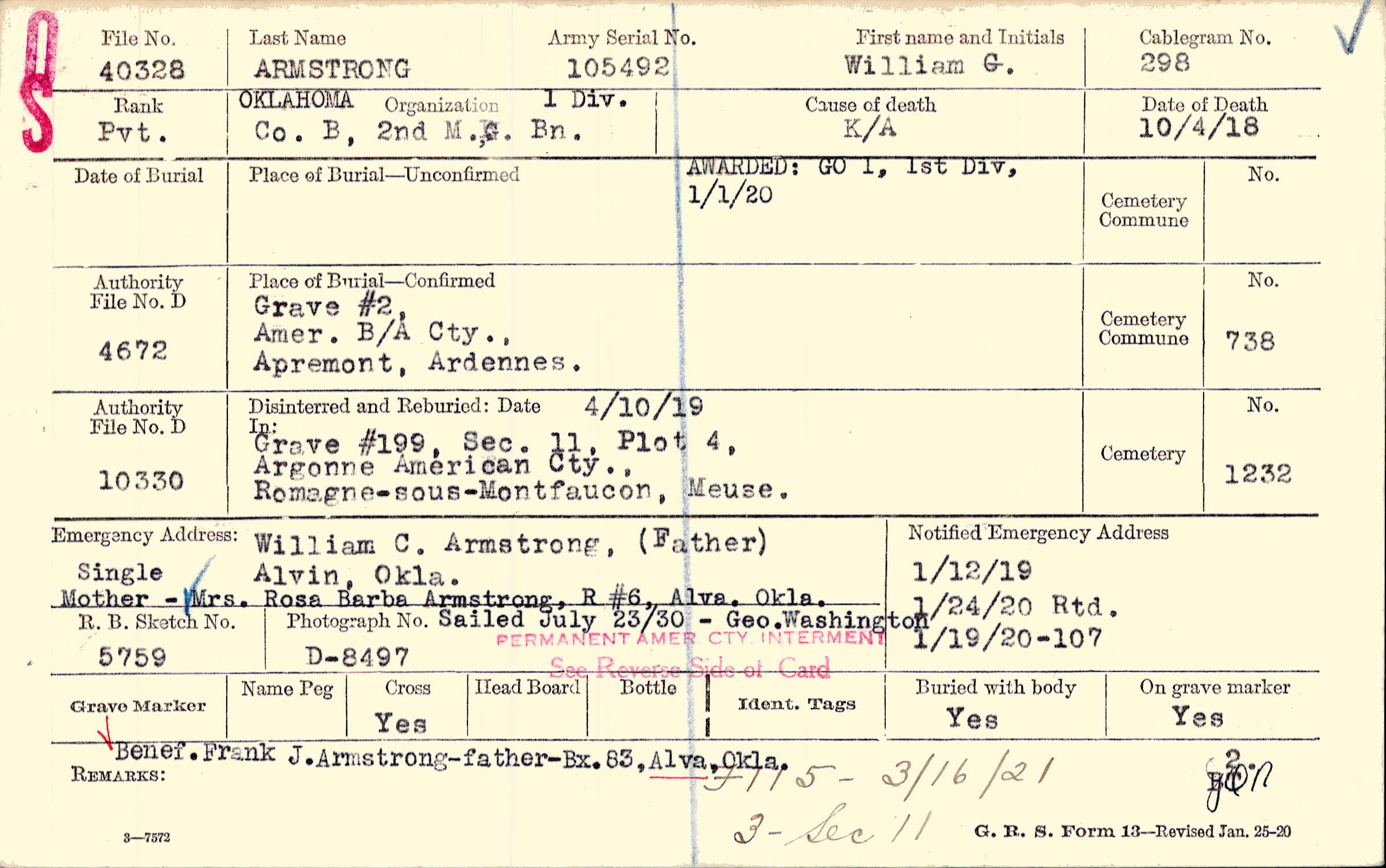 Benef. Frank J. Armstrong - father- BX. 83, Alva, Okla., F115 - 3/16/21 3 - Sec 11