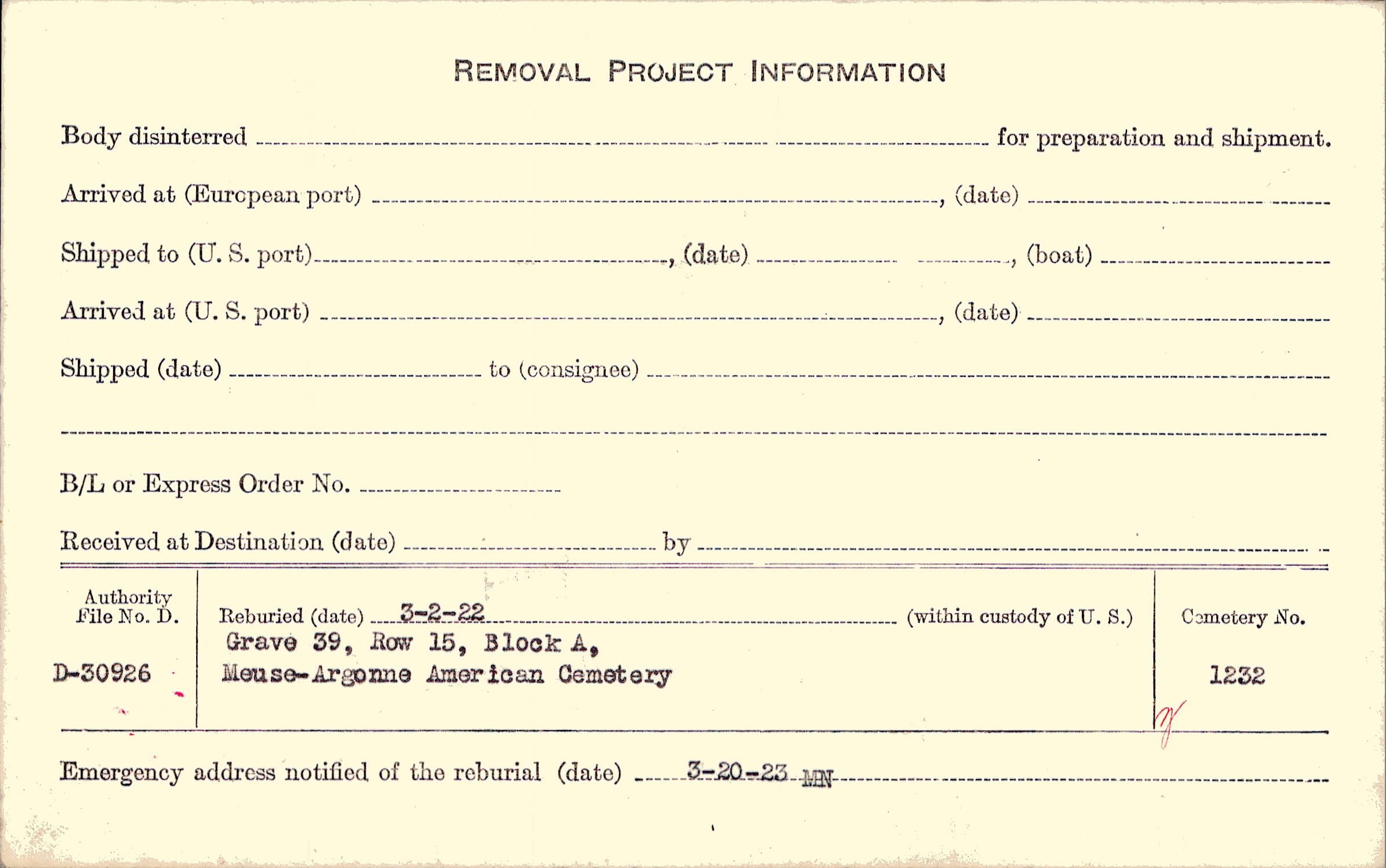 Grave 199, Section 11, Plot 4, Argonne American Cemetery, Romagne-sous-Montfaucon, Meuse