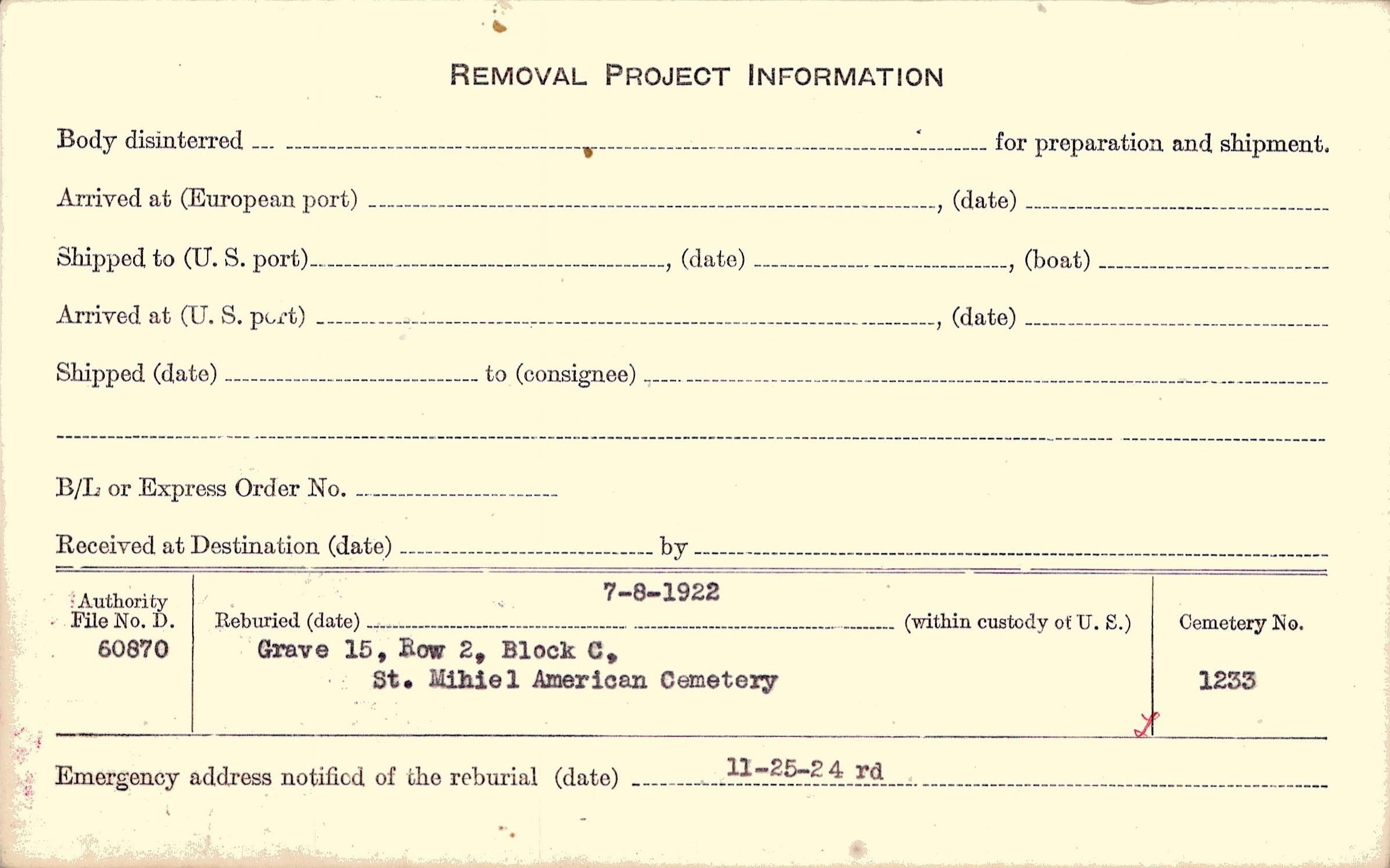 Grave B-77, Amer. Cty., Mars-sur-Allier, Nievre.