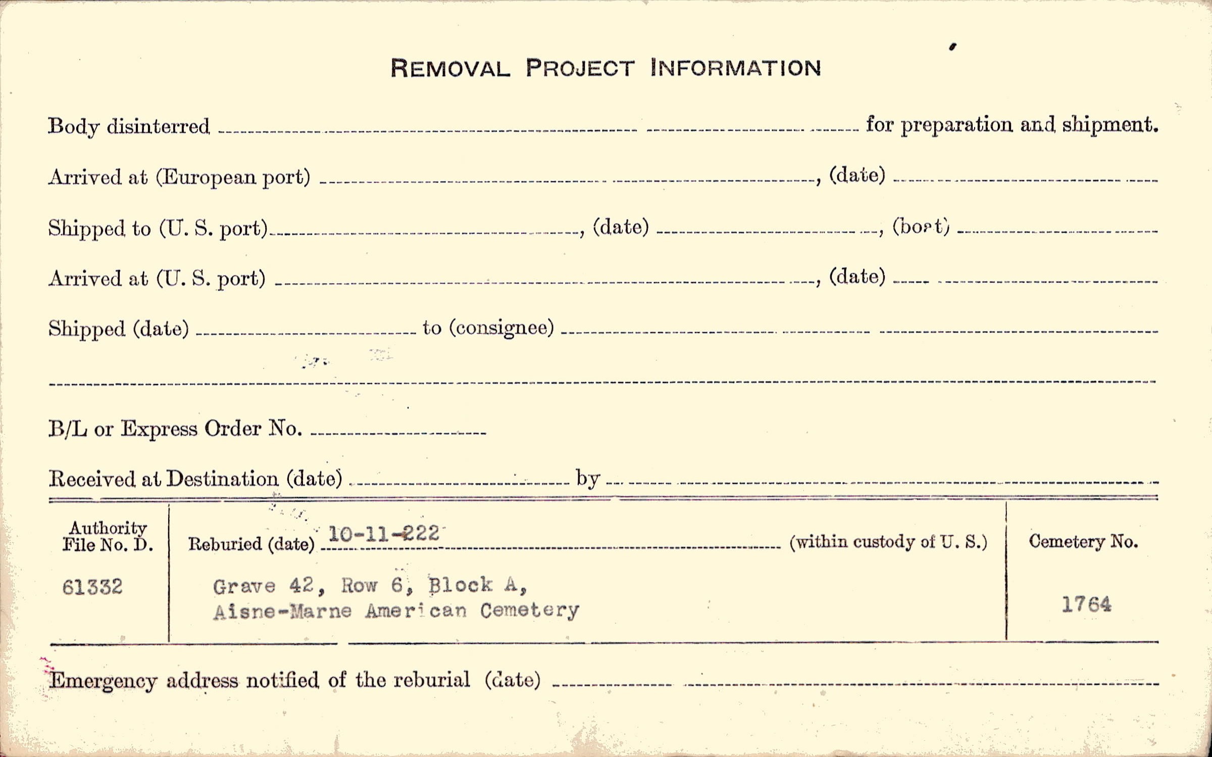 | Permanent Burial in Foreign Cemetery |