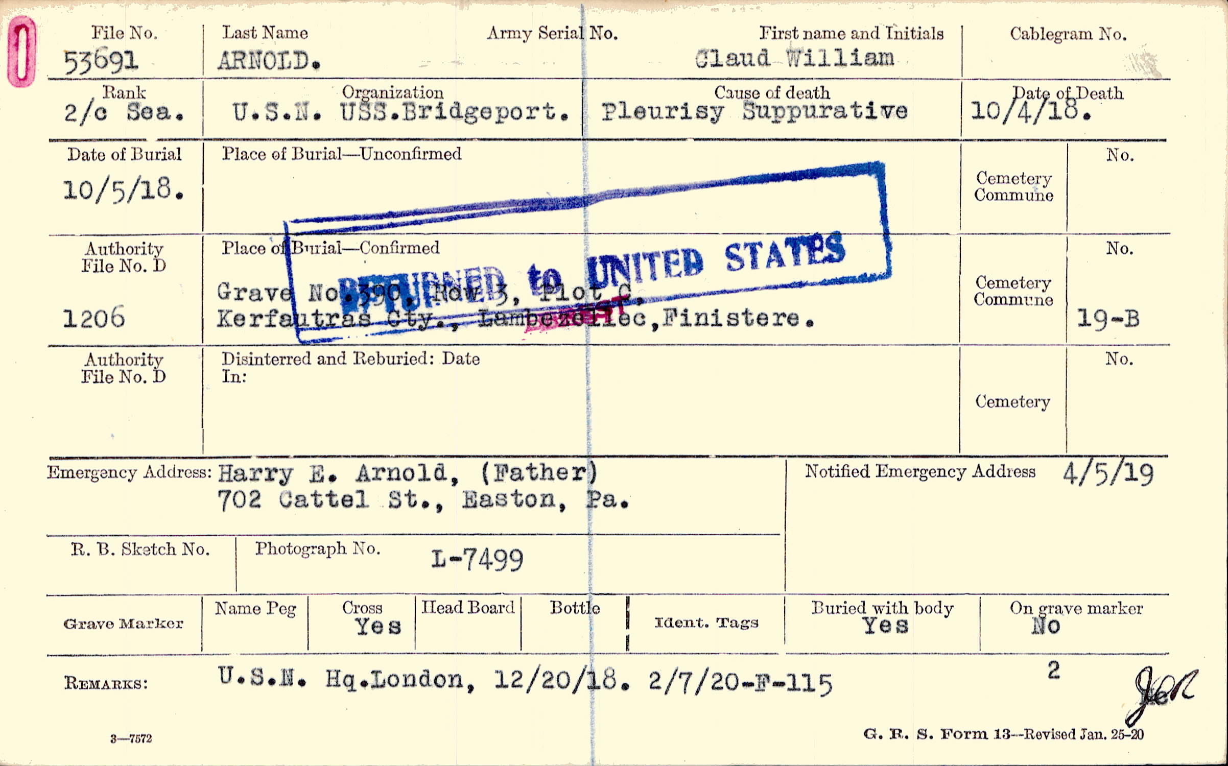 Harry E. Arnold, (Father), 702 Cattel St., Easton, Pa.