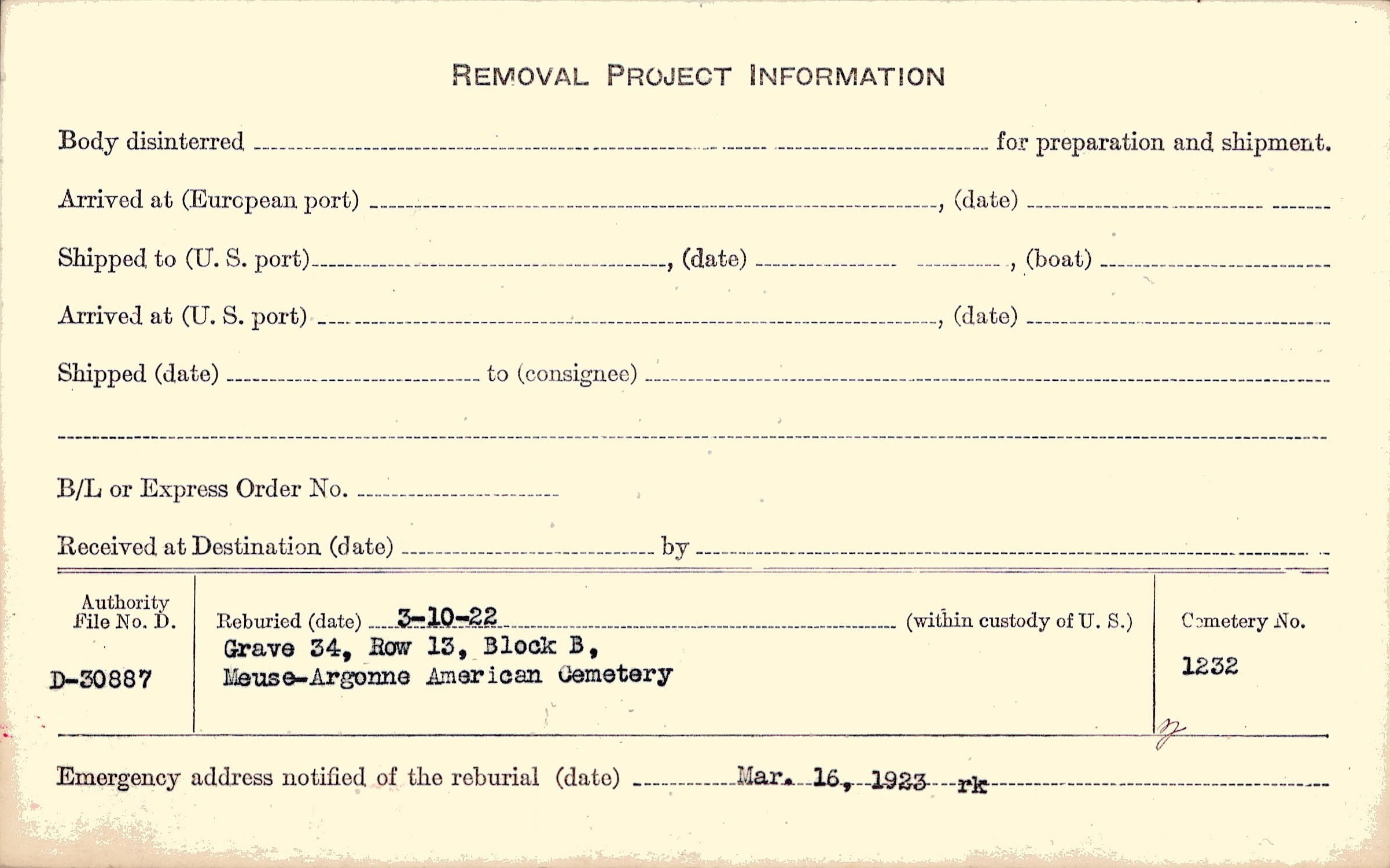 | Permanent Burial in Foreign Cemetery |