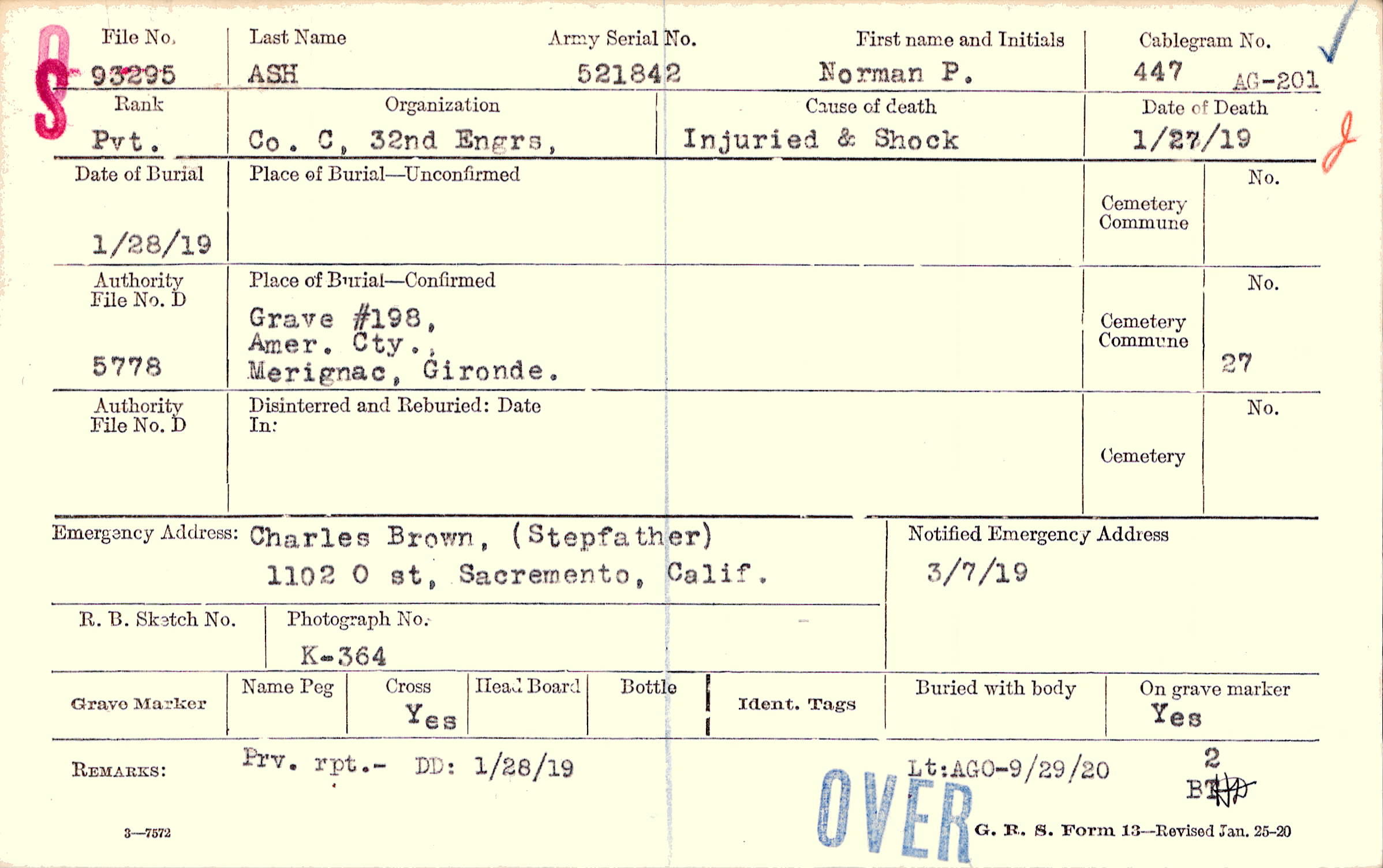 Grave #198, Amer. Cty., Merignac, Gironde.